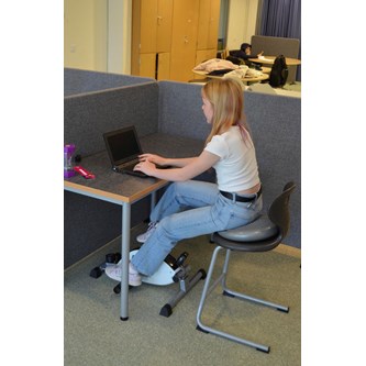 En liten klassrumscykel att ha under skolbänken tillsammans med elevens vanliga stol. Med hjälp av denna minivariant kan eleven enkelt röra på sig under lektionen. Cykeln har 8 olika motståndsnivåer. Displayen mäter hastighet, tidtagning, sträcka och kaloriförbrukning, men behöver inte användas.