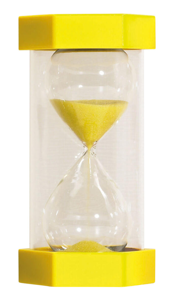 3 min, gul. Hållbara, stora och rejäla timglas i klar plast med gjutna basplattor. Konkretiserar tiden och tidsbegreppen för barnen. Perfekt för experiment, tidtagning, spel och lek. Av PE, PU och akryl. PVC-fri. Höjd: 15 cm. Från 3 år.