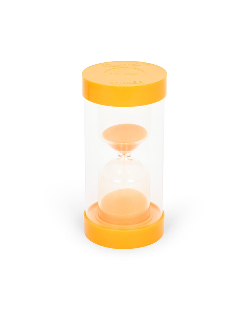 10 min, orange. Hållbara, stora och rejäla timglas i klar plast med gjutna basplattor. Konkretiserar tiden och tidsbegreppen för barnen. Perfekt för experiment, tidtagning, spel och lek. Av PE, PU och akryl. PVC-fri. Höjd: 15 cm. Från 3 år.