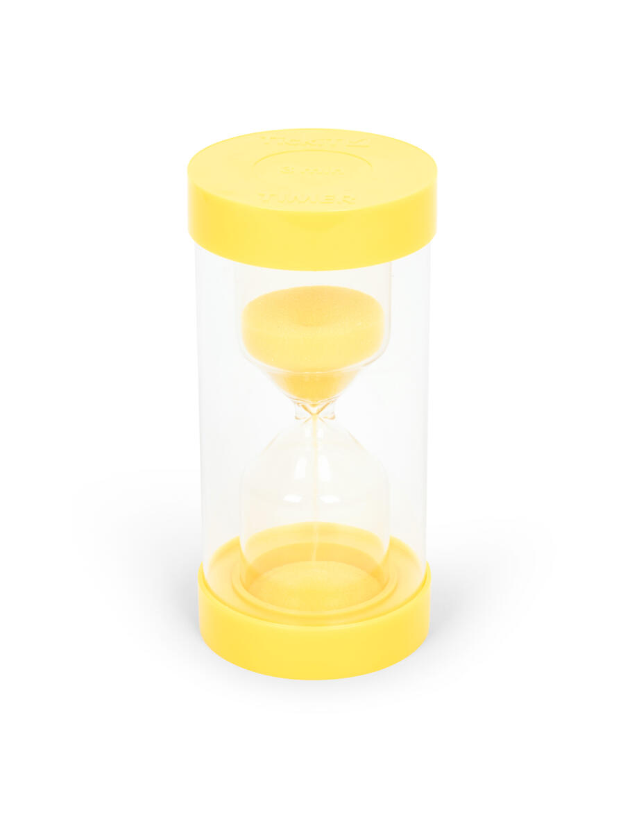 3 min, gul. Hållbara, gigantiska timglas i klar plast med gjutna basplattor. Konkretiserar tiden och tidsbegreppen för barnen. Perfekt för experiment, tidtagning, spel och lek. Av PE, PU och akrylplast. ø 15 cm, höjd 30 cm. Från 3 år.