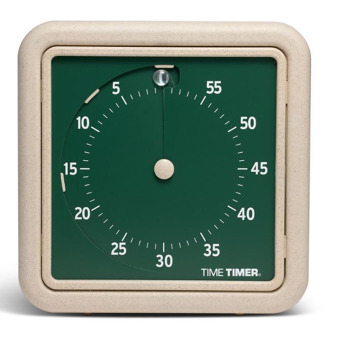 En mycket smart och konkret klocka som tydligt visar hur lång tid man har på sig, eller hur lång tid det är kvar. Ställ in det röda fältet på önskad tid, t.ex. 30 min, det röda fältet minskar sedan i klockans riktning. Inställningsbar 0–60 min. Perfekt att använda i en mindre grupp, vid datorn, eller när man vill utföra olika uppgifter på viss tid. 1 st AA-batteri krävs, ingår ej. På/av-knapp för alarm på baksidan. Mått: 9x9 cm. Material: ABS, PC och PVC.