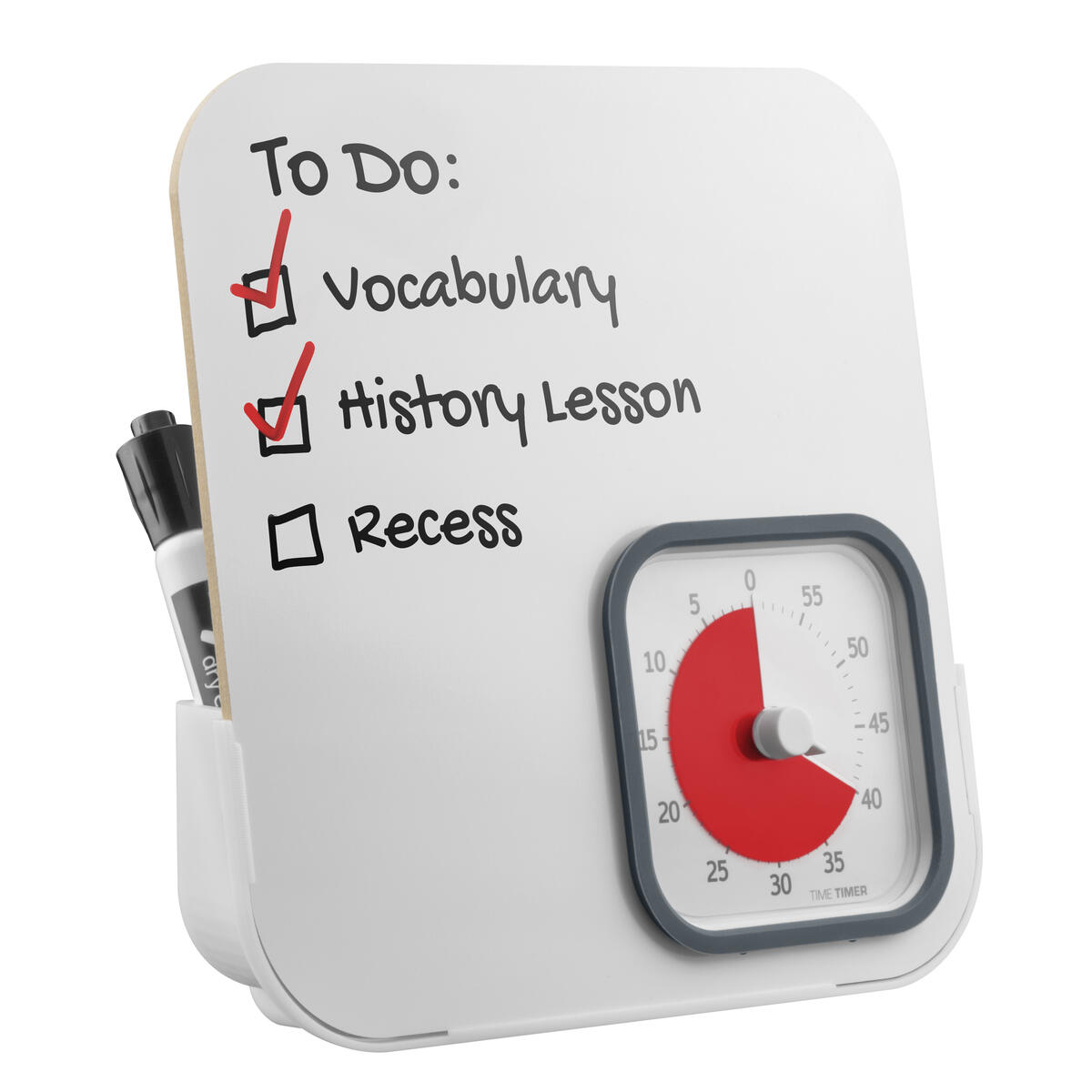Time Timer® Mod med en whiteboard för att skriva upp vad som ska göras. Även en whiteboardpenna ingår. Timern behöver 1 AA-batteri, detta ingår inte. Mått: 21x7x20 cm.