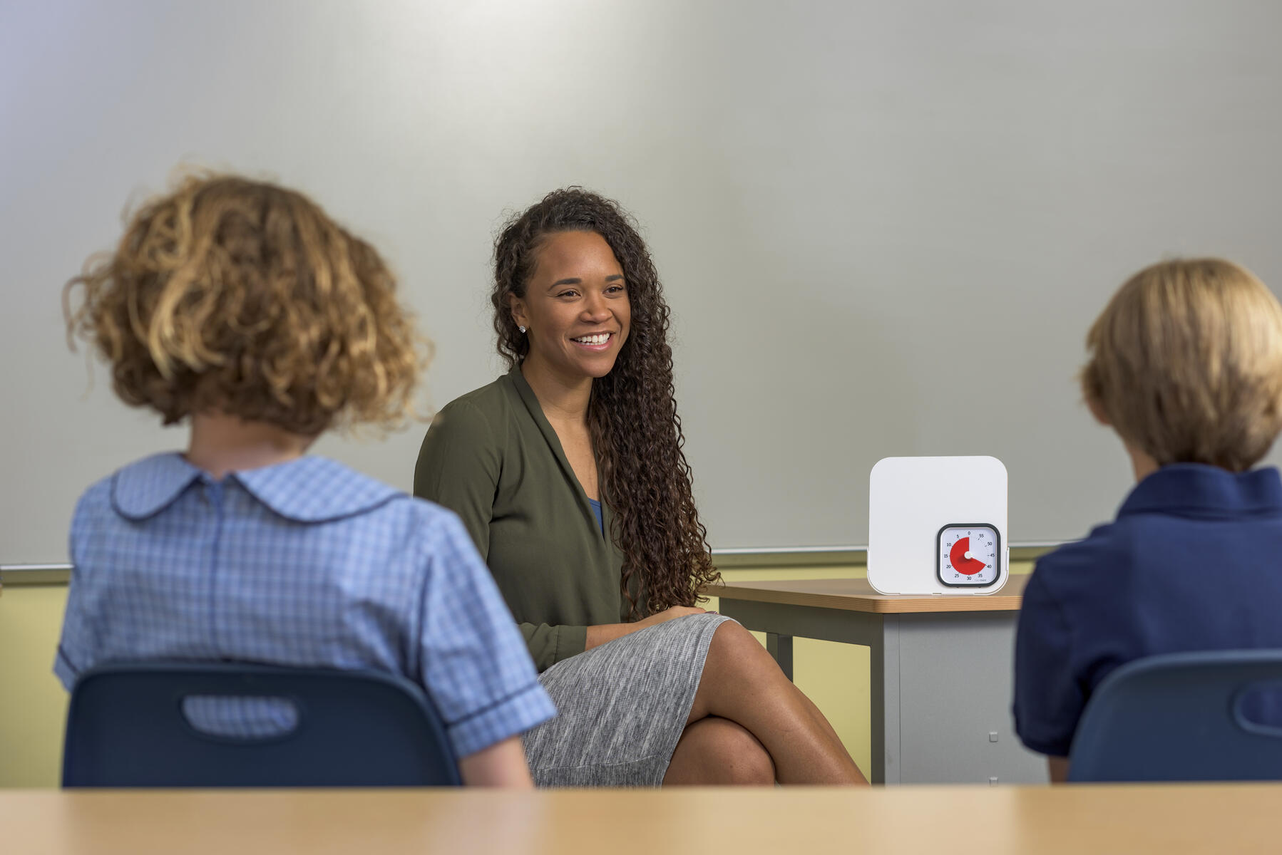 En mycket smart och konkret klocka som tydligt visar hur lång tid man har på sig, eller hur lång tid det är kvar. Ställ in det röda fältet på önskad tid, t.ex. 30 min. Det röda fältet minskar sedan i klockans riktning. Inställningsbar från 0-60 min. Denna stora modell passar utmärkt att hänga på väggen eller helt fristående i klassrummet. Den har även en magnetisk baksida. 1 st AA-batteri krävs, ingår ej. På/av-knapp för alarm på baksidan. Mått: 30x30 cm. Material: ABS, PC och PVC.