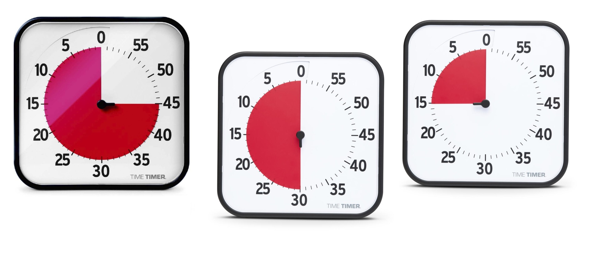 En mycket smart och konkret klocka som tydligt visar hur lång tid man har på sig, eller hur lång tid det är kvar. Ställ in det röda fältet på önskad tid, t.ex. 30 min, det röda fältet minskar sedan i klockans riktning. Inställningsbar 0–60 min. Perfekt att använda i en mindre grupp, vid datorn, eller när man vill utföra olika uppgifter på viss tid. 1 st AA-batteri krävs, ingår ej. På/av-knapp för alarm på baksidan. Mått: 9x9 cm. Material: ABS, PC och PVC.