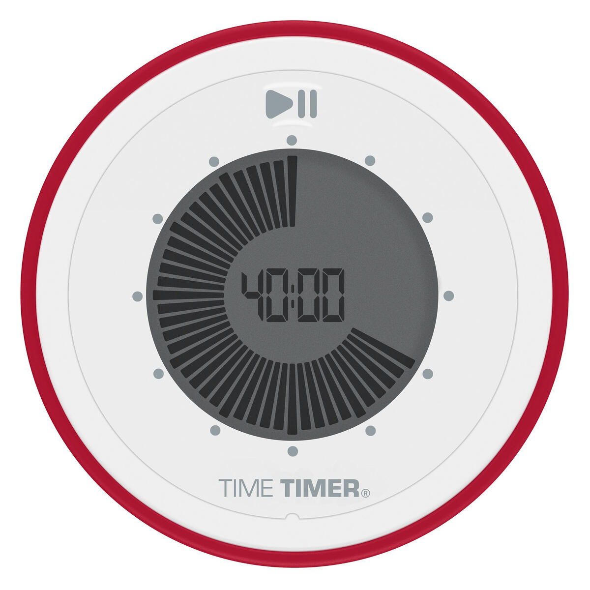 Time Timer® Plus 60-minuters har en tydlig visuell röd platta så att man ser hur mycket tid det är kvar. Ett handtag gör den lätt att bära med sig. Ljudlös nedräkning. Volym på alarm kan justeras. Mått 14x18 cm. Ett AA batteri krävs, medföljer inte. Material: ABS, PC och PVC.