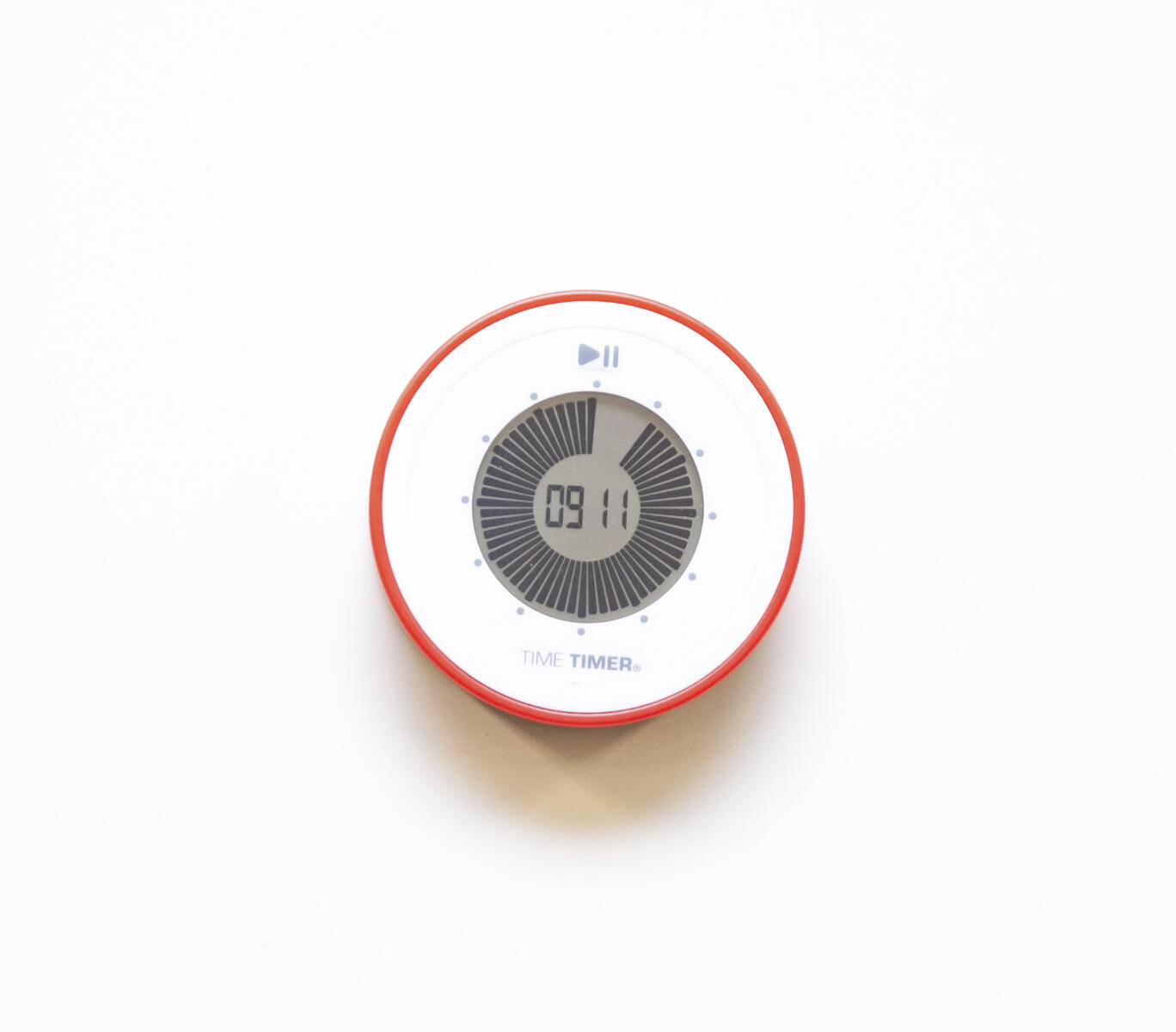En mycket smart och konkret klocka som tydligt visar hur lång tid man har på sig, eller hur lång tid det är kvar. Ställ in det röda fältet på önskad tid, t.ex. 30 min, det röda fältet minskar sedan i klockans riktning. Inställningsbar 0–60 min. Perfekt att använda i en mindre grupp, vid datorn, eller när man vill utföra olika uppgifter på viss tid. 1 st AA-batteri krävs, ingår ej. På/av-knapp för alarm på baksidan. Mått: 9x9 cm. Material: ABS, PC och PVC.