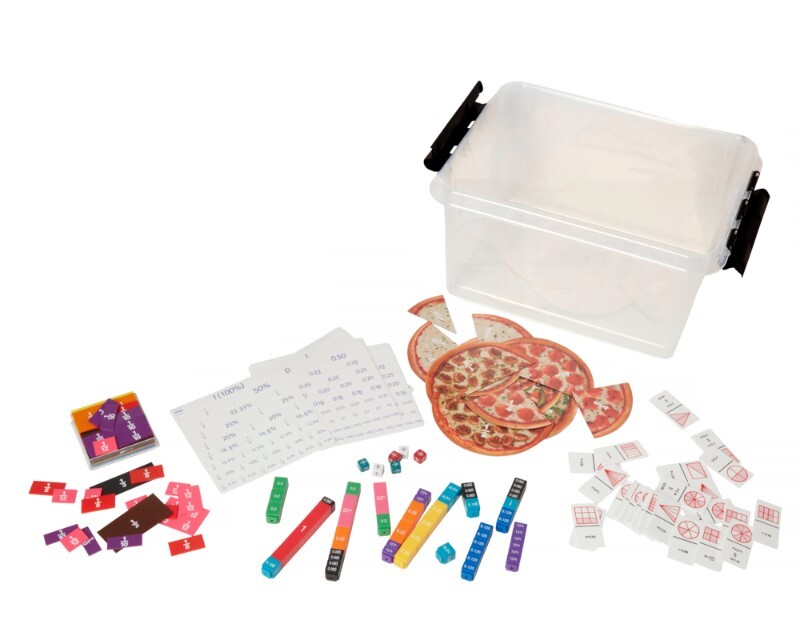 Paket med produkter där samband mellan bråk-, decimal- och procentform tränas. Detta set innehåller Bråkdelar. Bråk med procent och decimaltorn, Bråktärningar, Magnetiska pizzabråk, Flexitable bråk samt spelet Bråkdomino som man kan jobba med individuellt eller spela i grupp i upp till 4 personer. Ålder: 6-12.