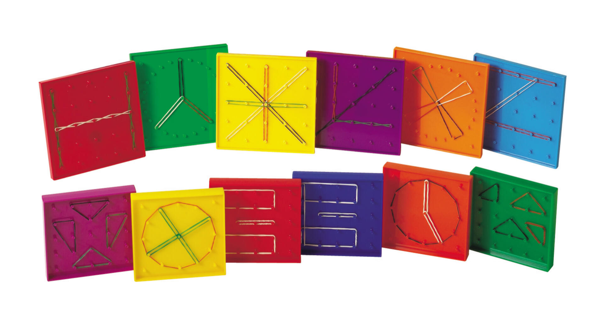 Ett set som innehåller 36 aktivitetskort i varierande svårighetsgrad och 124 plastfigurer i sex olika former och färger. Uppmuntrar barnen till att utforska geometriska mönster. Från 4 år.