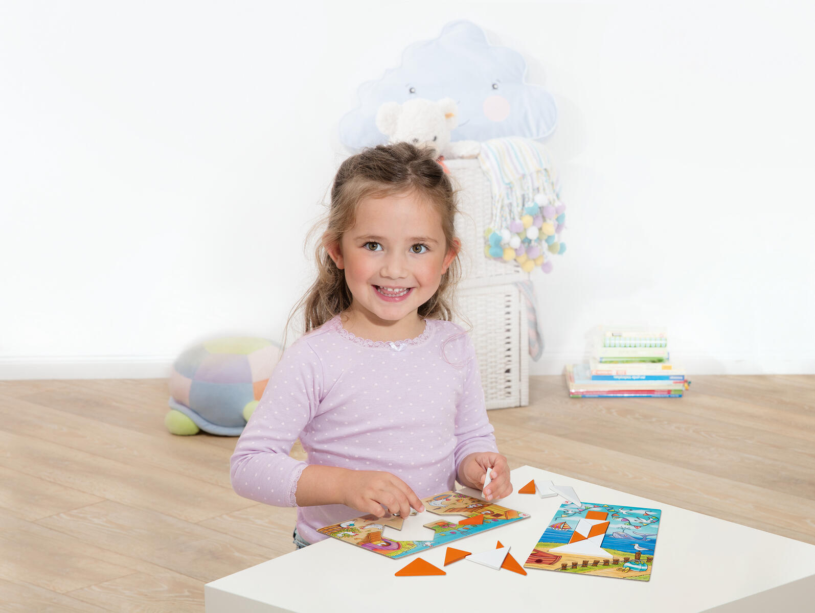 Ett set som innehåller 36 aktivitetskort i varierande svårighetsgrad och 124 plastfigurer i sex olika former och färger. Uppmuntrar barnen till att utforska geometriska mönster. Från 4 år.