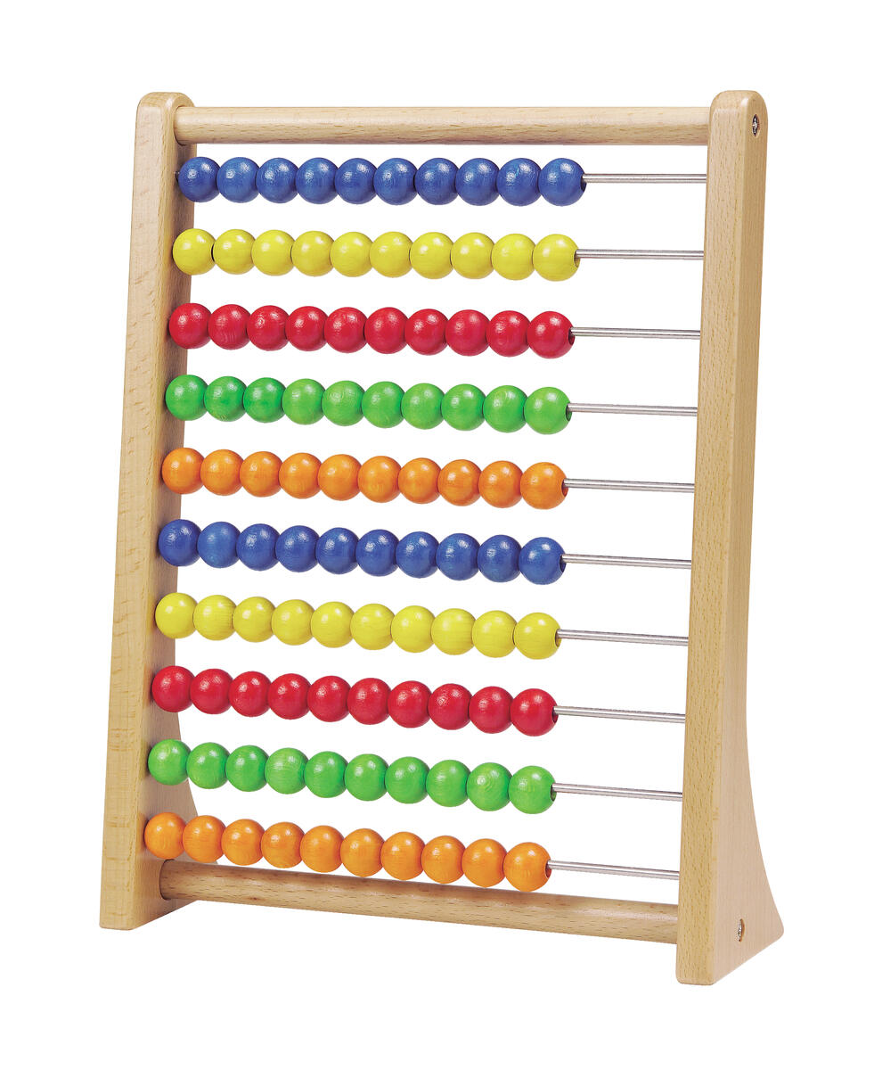 Modern variant av traditionell abacus. Med kulor i 5 färger och siffror horisontalt och vertikalt på ramen. Mått: 23x15 cm. Av polystyren- och polyetylenplast. Från ca 5 år.