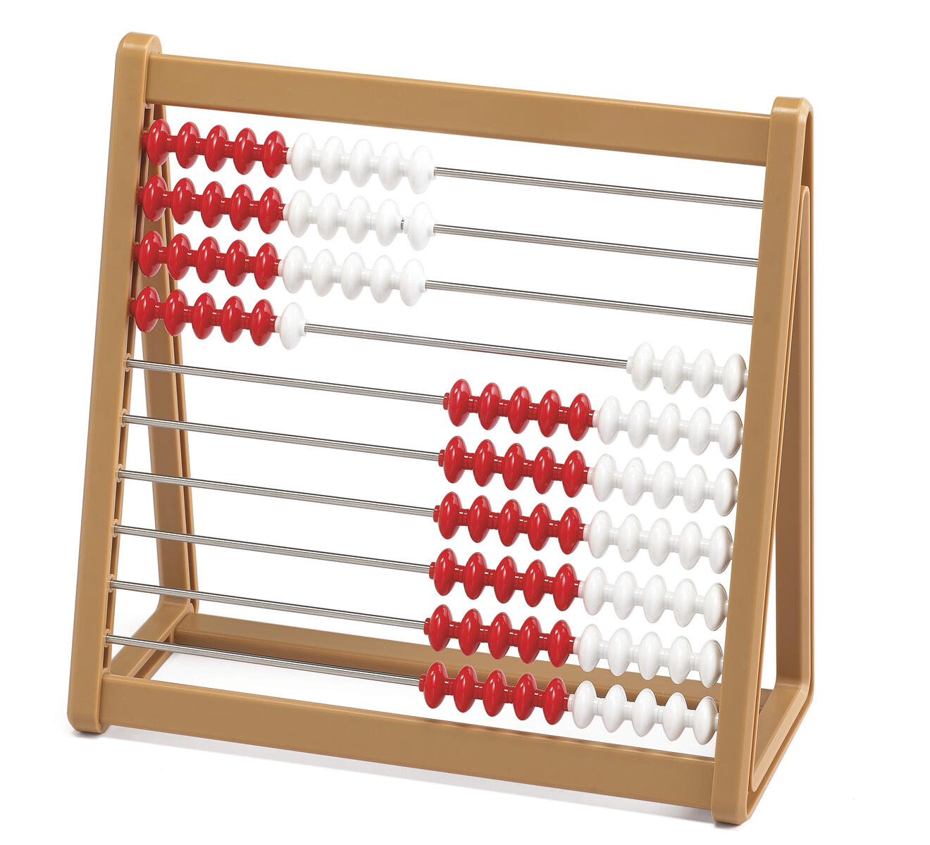 Modern variant av traditionell abacus. Med kulor i 5 färger och siffror horisontalt och vertikalt på ramen. Mått: 23x15 cm. Av polystyren- och polyetylenplast. Från ca 5 år.