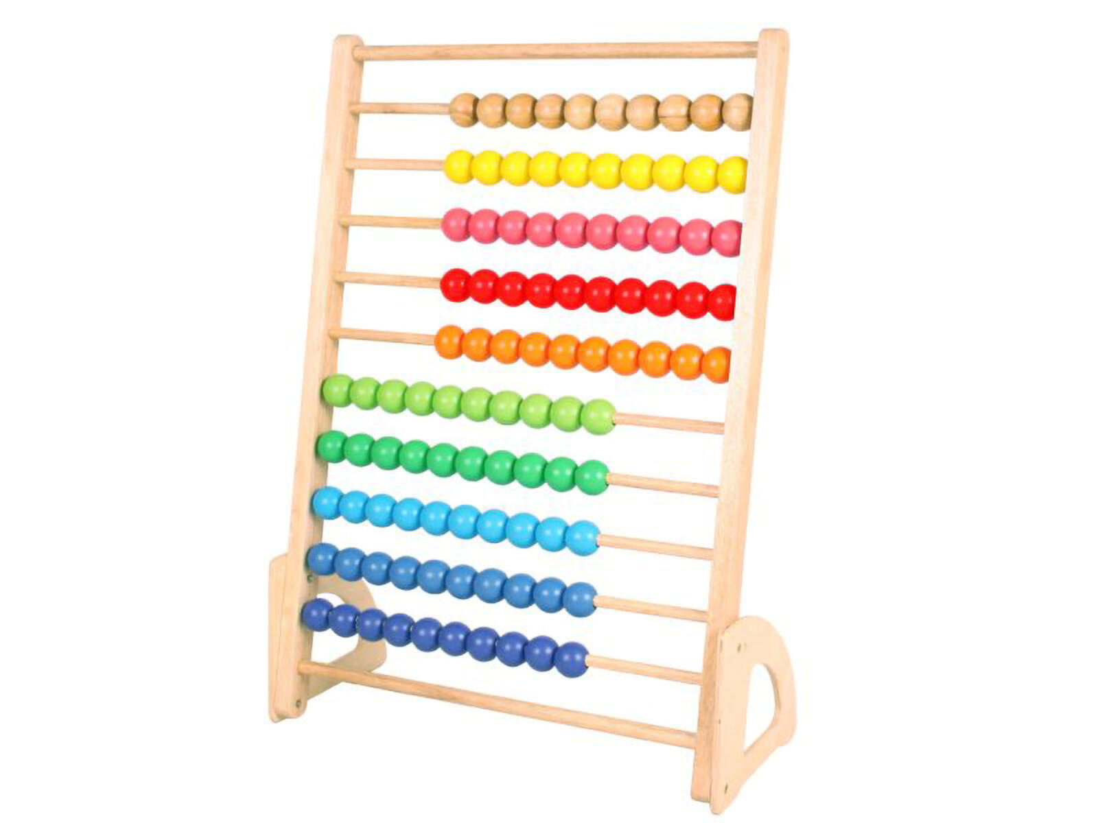 Mycket stor och stabil kulram i glada färger. Stöden monteras enkelt ihop med 4 stora träskruvar som medföljer. Mått: ca 65x90 cm. Diameter på kulorna ca 4 cm. Av återplanterat trä. PVC-fri. Från 3 år.