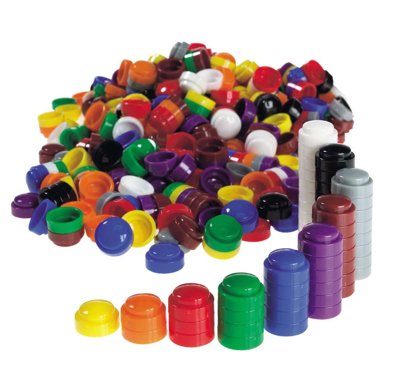 500 kuber i 10 olika färger som går att sätta ihop på alla sidor. Kuberna är 2 cm stora för att man lätt ska kunna greppa dem. Bra materiel när man arbetar med vikt, volym och längd. Fungerar även bra till sortering och räkning. Av ABS. Från 3 år.