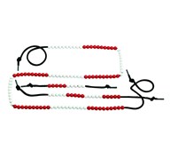 Band med 100 påträdda pärlor. Pärlorna är i 2 färger, totalt 1 m. Visualiserar tydligt 10-stegs intervaller, underlättar vid överslags- och hoppräkning samt hjälper barnen att se mönster och förhållanden. Kan användas som mätinstrument på runda saker.