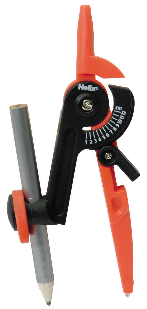 10 st/fp. Självcentrerande kompass med bågfjäder. Med tumhjulet kan du justera inställningen exakt. Idealisk för tekniskt bruk. Inkluderar extra blystift. Av stål, zinklegering och järn. Blyertsrör av PS.