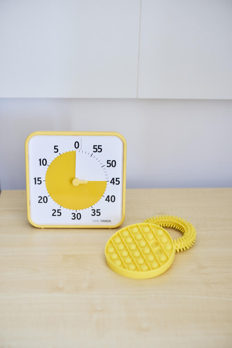 3 st/fp. Time Timer® i primärfärgerna (röd, gul och blå.) De olika färgerna kan tillhöra olika delar av rummet, t.ex. lugna delen, skapandedelen eller läshörnan. Kan användas på en plan yta eller hängas på vägg. Den har även en magnetisk baksida. Behöver 2xAA-batterier, ingår ej. På/av-knapp för alarm på baksidan. Mått: 19x19x3,8 cm. Material: ABS, PC och PVC.