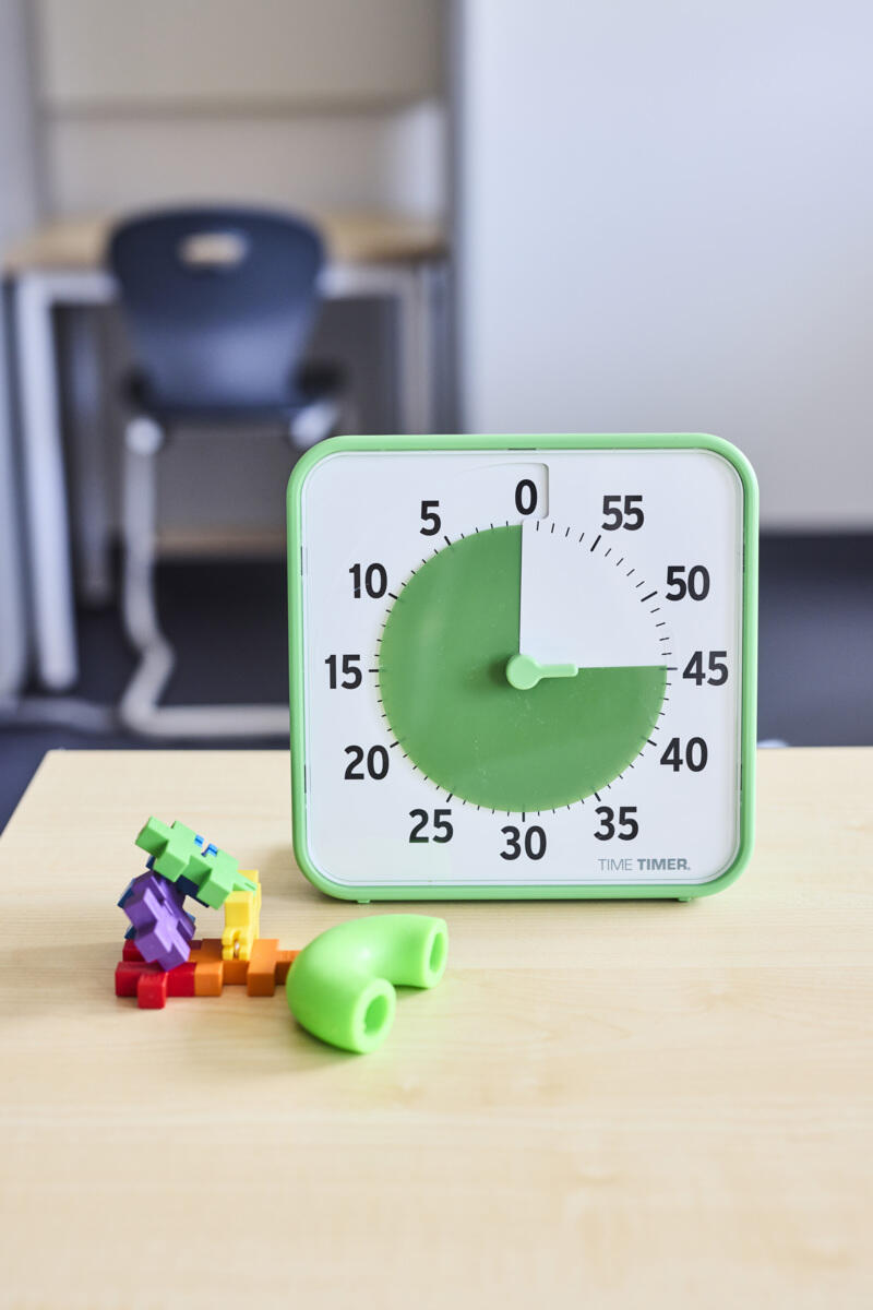 En mycket smart och konkret klocka som tydligt visar hur lång tid man har på sig, eller hur lång tid det är kvar. Ställ in det röda fältet på önskad tid, t.ex. 30 min, det röda fältet minskar sedan i klockans riktning. Inställningsbar 0–60 min. Perfekt att använda i en mindre grupp, vid datorn, eller när man vill utföra olika uppgifter på viss tid. 1 st AA-batteri krävs, ingår ej. På/av-knapp för alarm på baksidan. Mått: 9x9 cm. Material: ABS, PC och PVC.