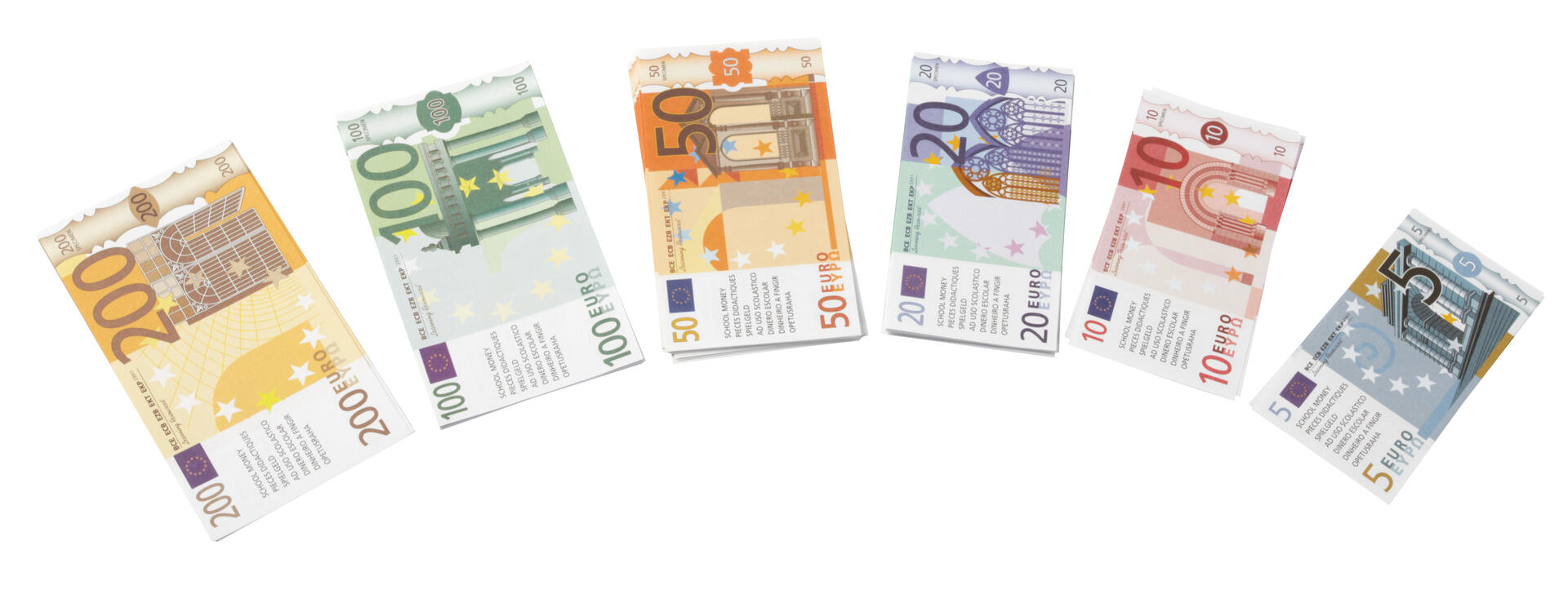 Ett blandat myntset med realistiskt utseende och storlek. Innehåller: 20 st av varje: 1 cent, 5 cent, 10 cent. 10 st av varje: 20 cent, 50 cent, 1 euro. 5 st av varje: 2 cent och 2 euro. Totalt 100 mynt. Av plast, Av PS. PVC-fri. Från 5 år.