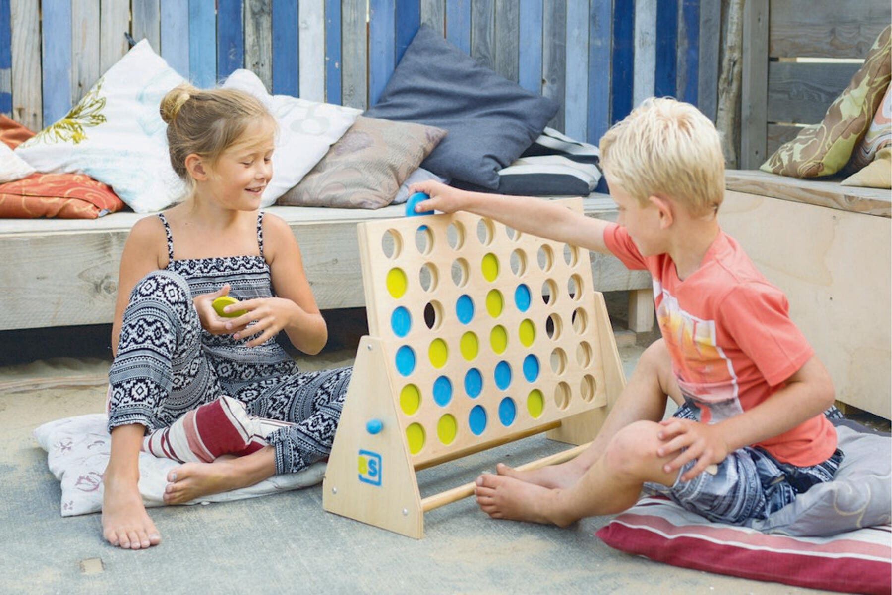 Ett klassiskt spel i fin kvalitet och stort format. Kan användas ute men bör tas in nattetid och vid regn. Spelet går ut på att få 4 av sina marker i rad först, antingen lodrätt, vertikalt eller diagonalt. När spelet är slut tömmer man enkelt ut markerna och börjar om igen. Förvaringspåse ingår. Mått: H48xB60 cm. Av FSC-märkt trä. PVC-fri. Från 6 år.
