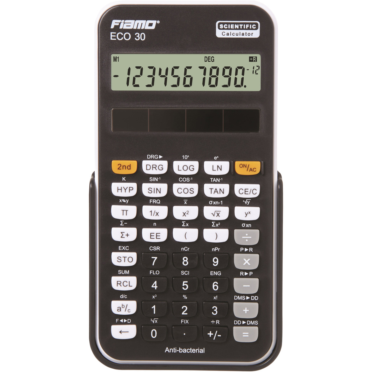 En vetenskaplig miniräknare med antibakteriell yta och solcellsdrift. Den är tillverkad av återvunnen plast och har 138 funktioner, inklusive logaritmer, trigonometri, statistik och bråk. Med sin tydliga LCD-skärm och användarvänliga design passar den både för grundläggande och avancerade beräkningar.