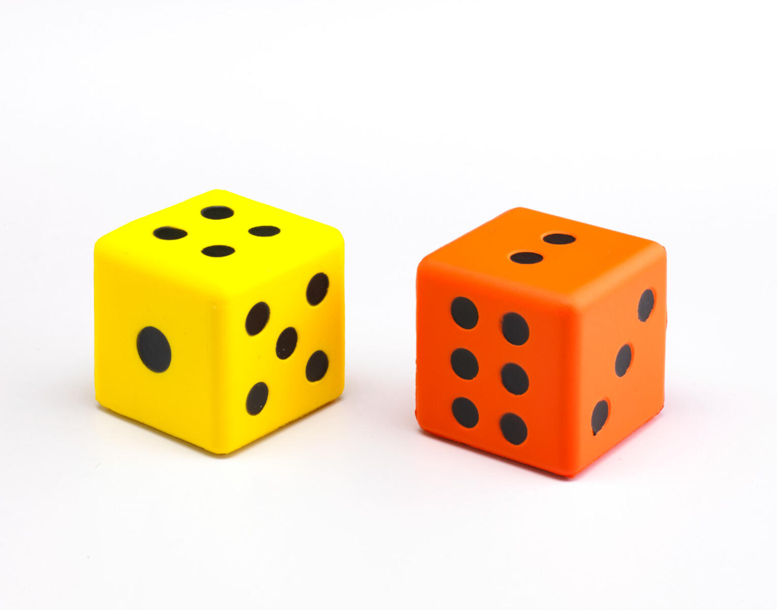 2 st/fp. Tysta skumpricktärningar för matematiklekar. 13 cm. Tärningarna är tillverkade av ett slitstarkt, högkvalitativt skum. Från 3 år.