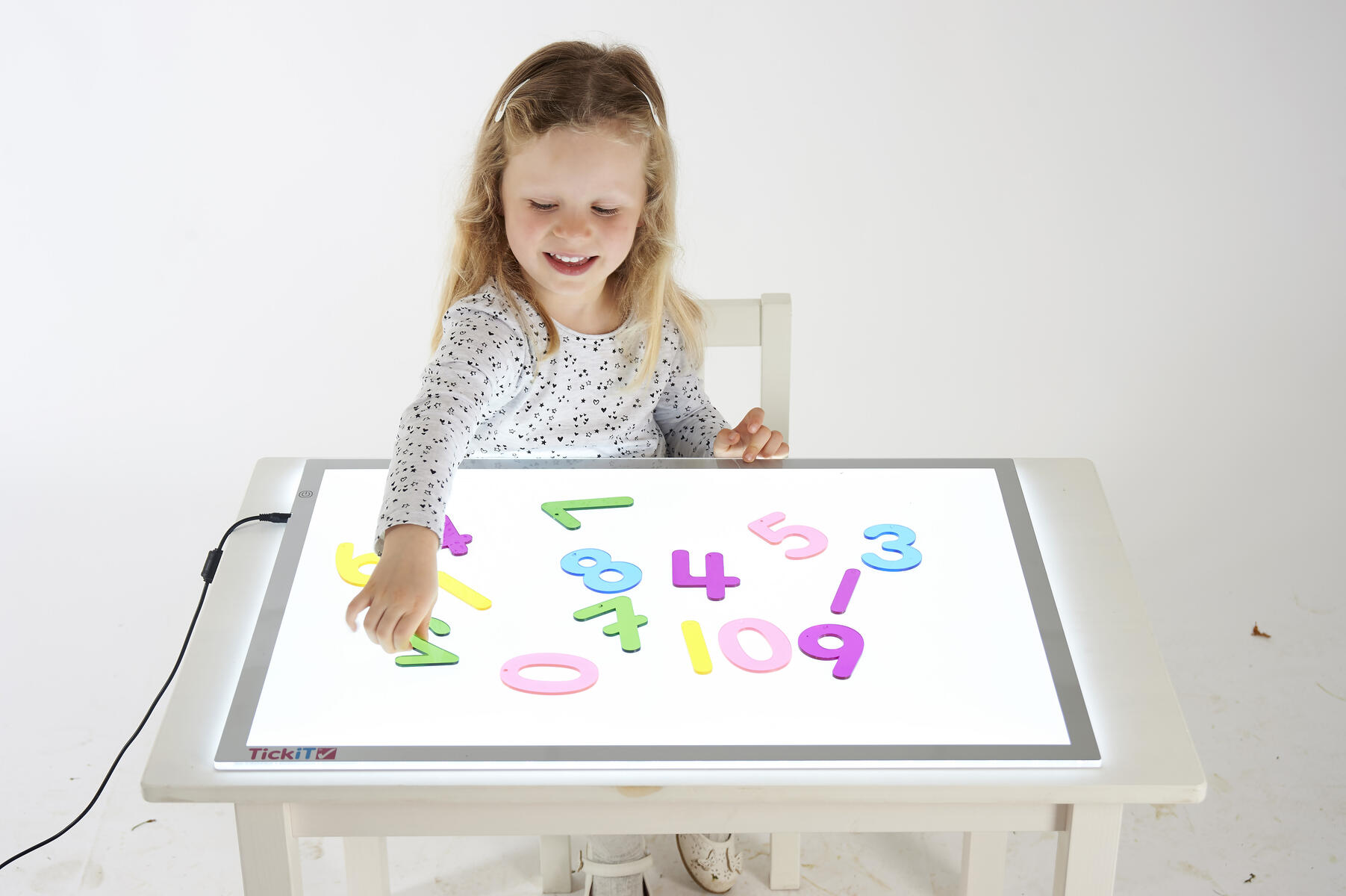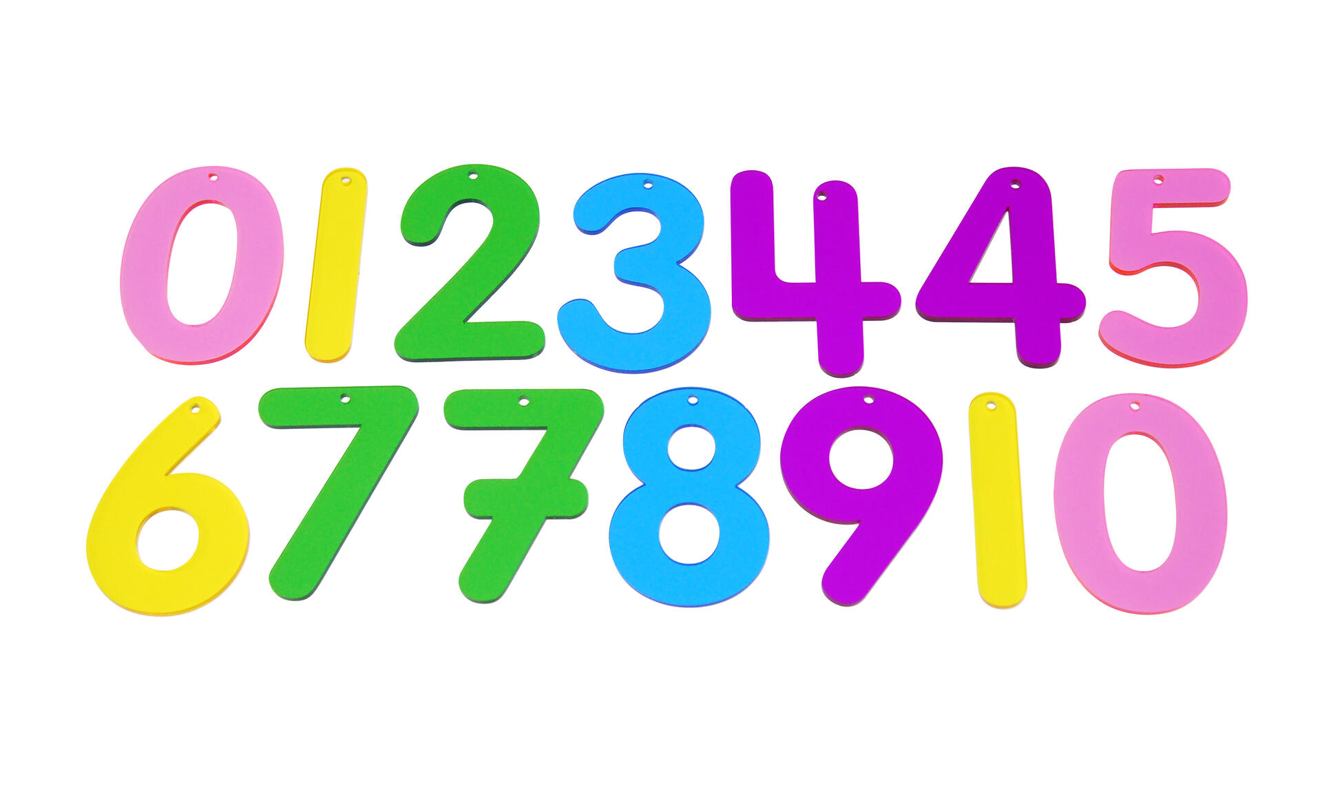 14 st/fp. 70 mm höga akrylsiffror 0-9. De är idealiska för användning på en ljuslåda för att uppmuntra nummerinlärning. Kan hängas. Ej lämpliga för barn under 3 år, innehåller smådelar. PVC-fri.