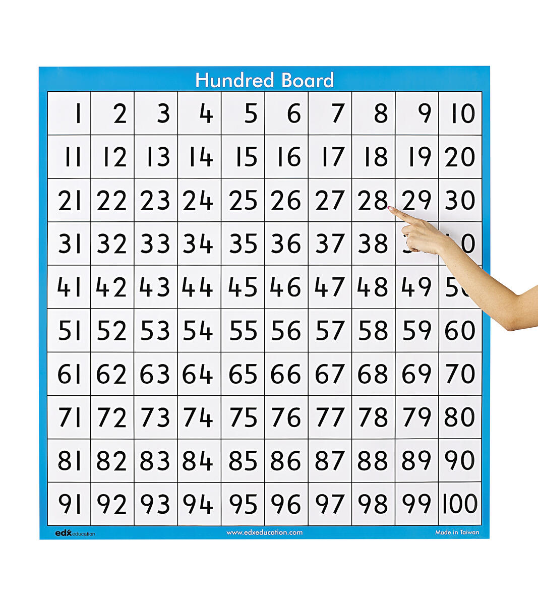 Perfekt för att tydligt demonstrera talmönster. Dubbelsidig: en sida med siffror 0-100 och en utan siffror. Avtorkningsbar, använd whiteboardpennor. Mått: 102x107 cm.