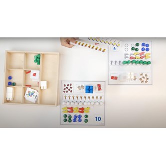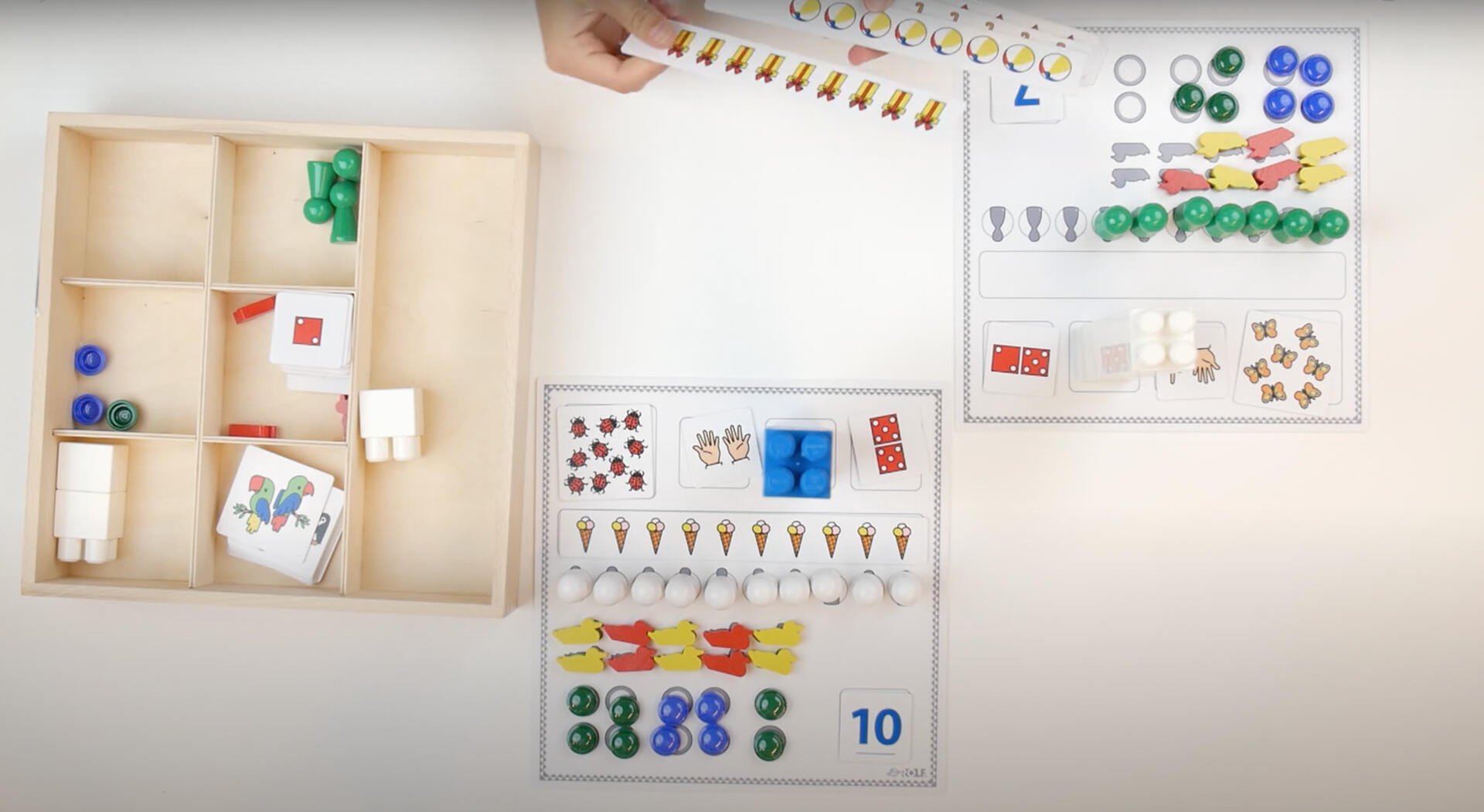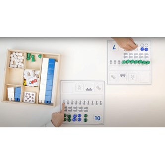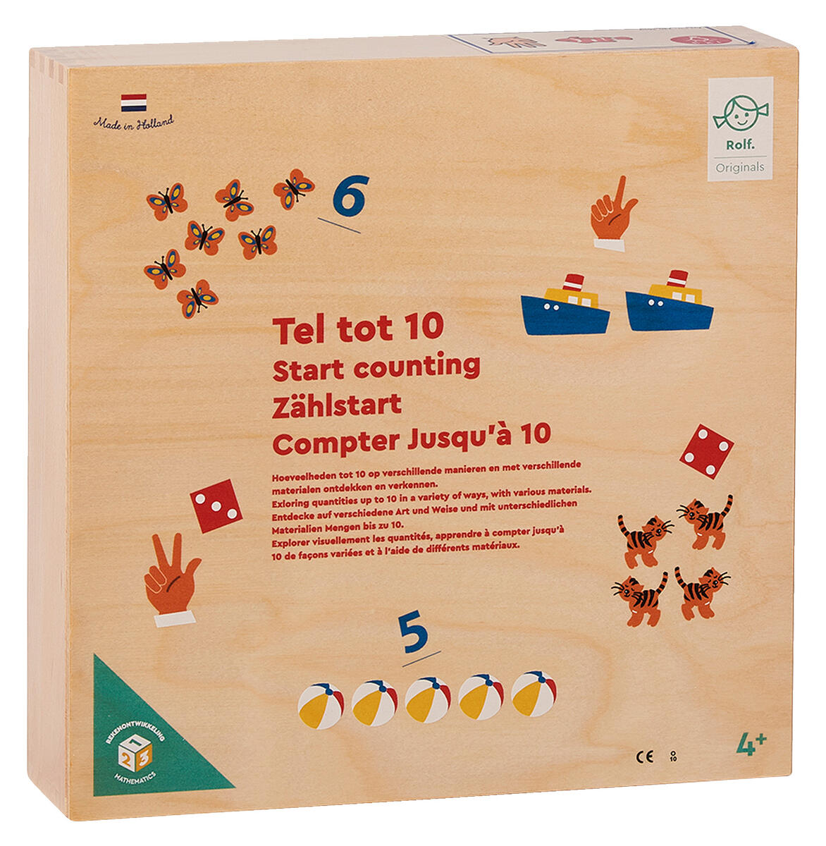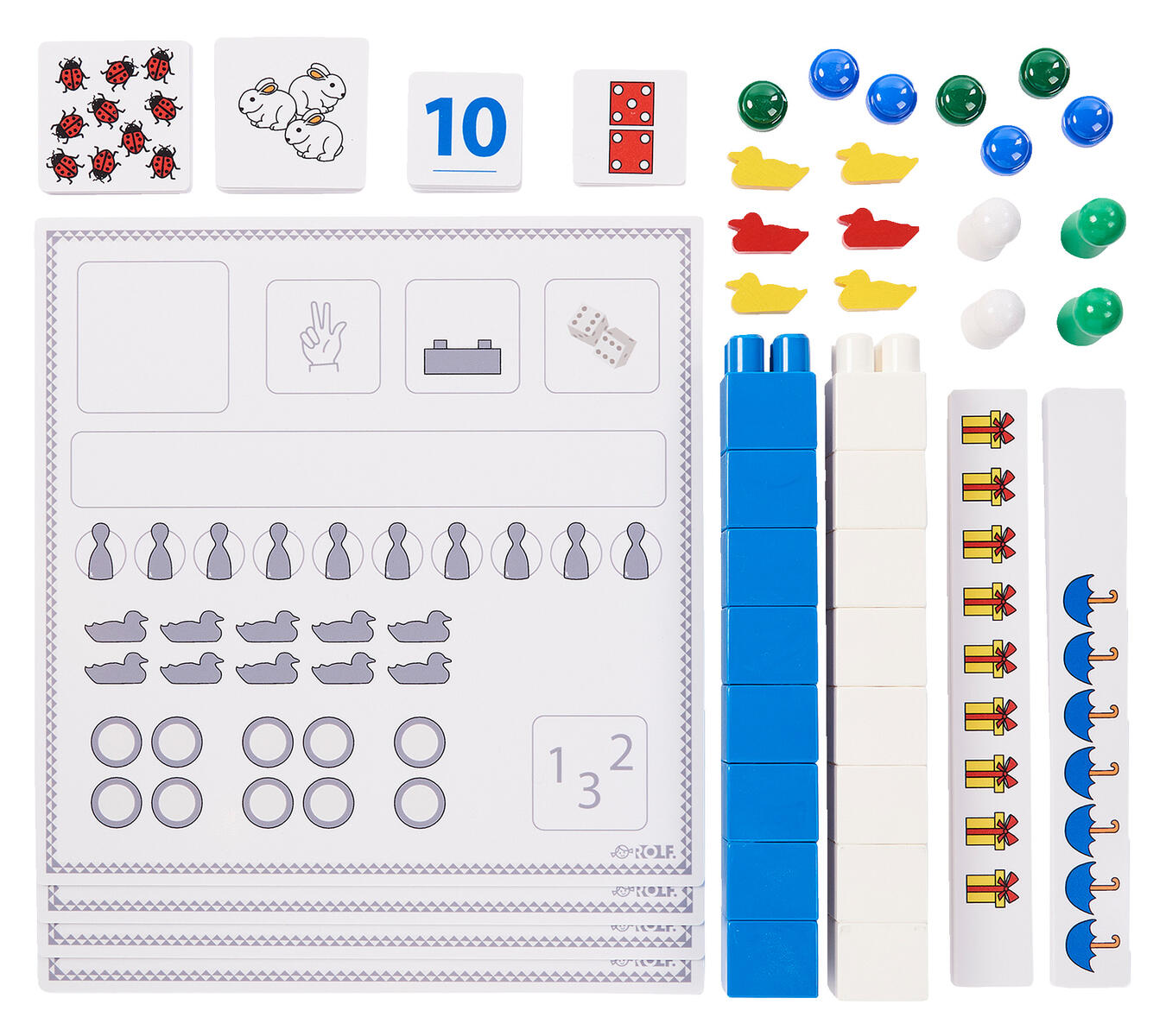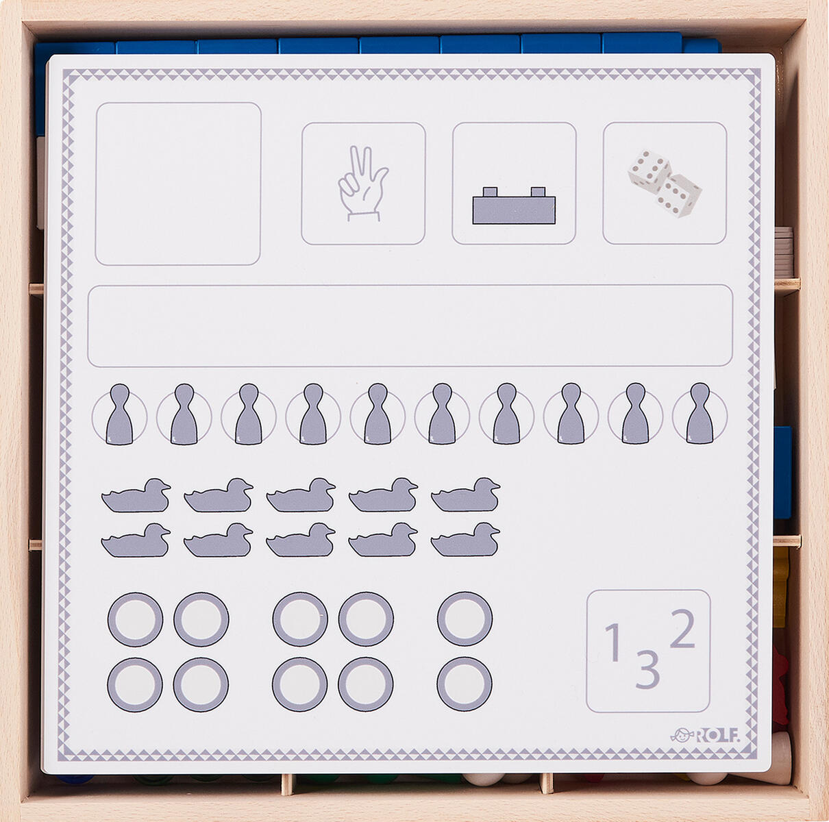Ett spel som på ett enkelt sätt lär barnen aritmetik. Genom att addera de olika spelpjäserna en åt gången lär sig barnen att räkna på ett enkelt och taktilt sätt. Spelet innehåller 4 olika spelplaner, 50 antalsbrickor i olika storlek, 80 spelpjäser i olika material och form samt instruktioner. PVC-fri.