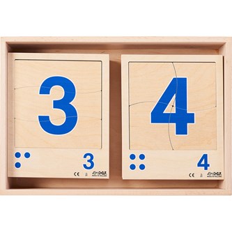 Ett pussel för att träna på numeriska problem upp till 10. För att kunna åka karusellen behöver man hoppa in i rätt hytt. Olika siffror kombineras sedan för att få rätt antal i varje hytt. Flera lösningar är möjliga, t.ex. kan 5 barn i en hytt vara 4+1 eller 3+2. Innehåller 2 identiska 16-bitarspussel, 12 dubbelsidiga aktivitetskort med 24 olika aktiviteter samt instruktioner. PVC-fri.