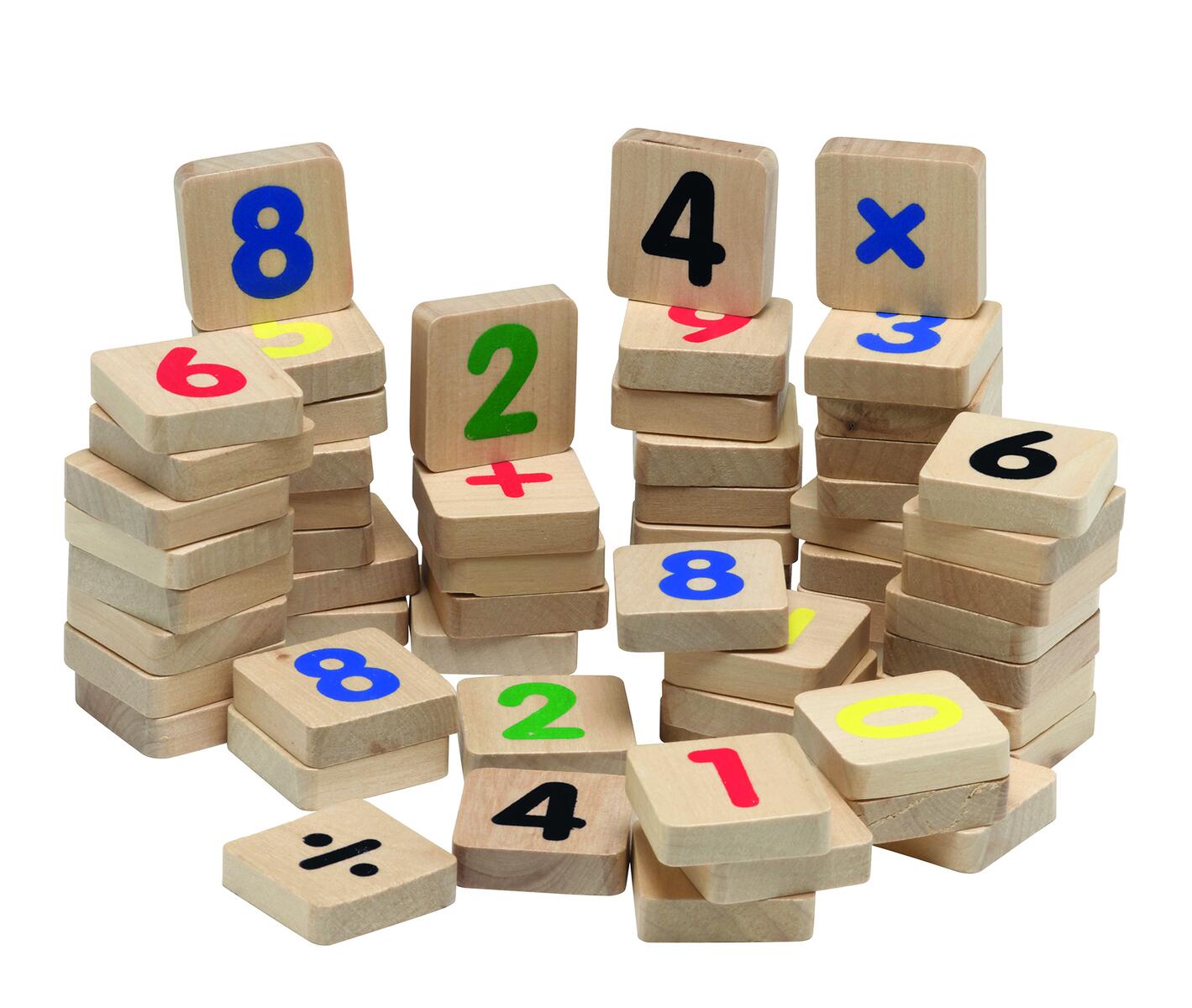 60 st/fp. Magnetiska träbrickor med tryckta siffror 0-9 i olika färger. Innehåller även aritmetiska tecken som plus, minus, multiplikation och division. Avsedda för lärarledd undervisning. Inklusive förvaringspåse. Mått: 3,2x3,2x1,2 cm. PVC-fri. Från 3 år.