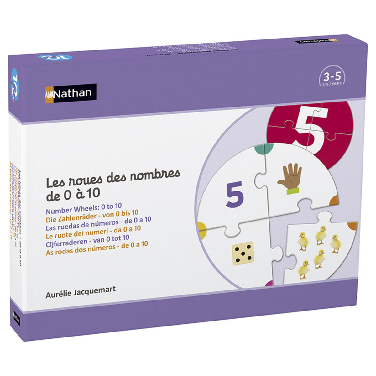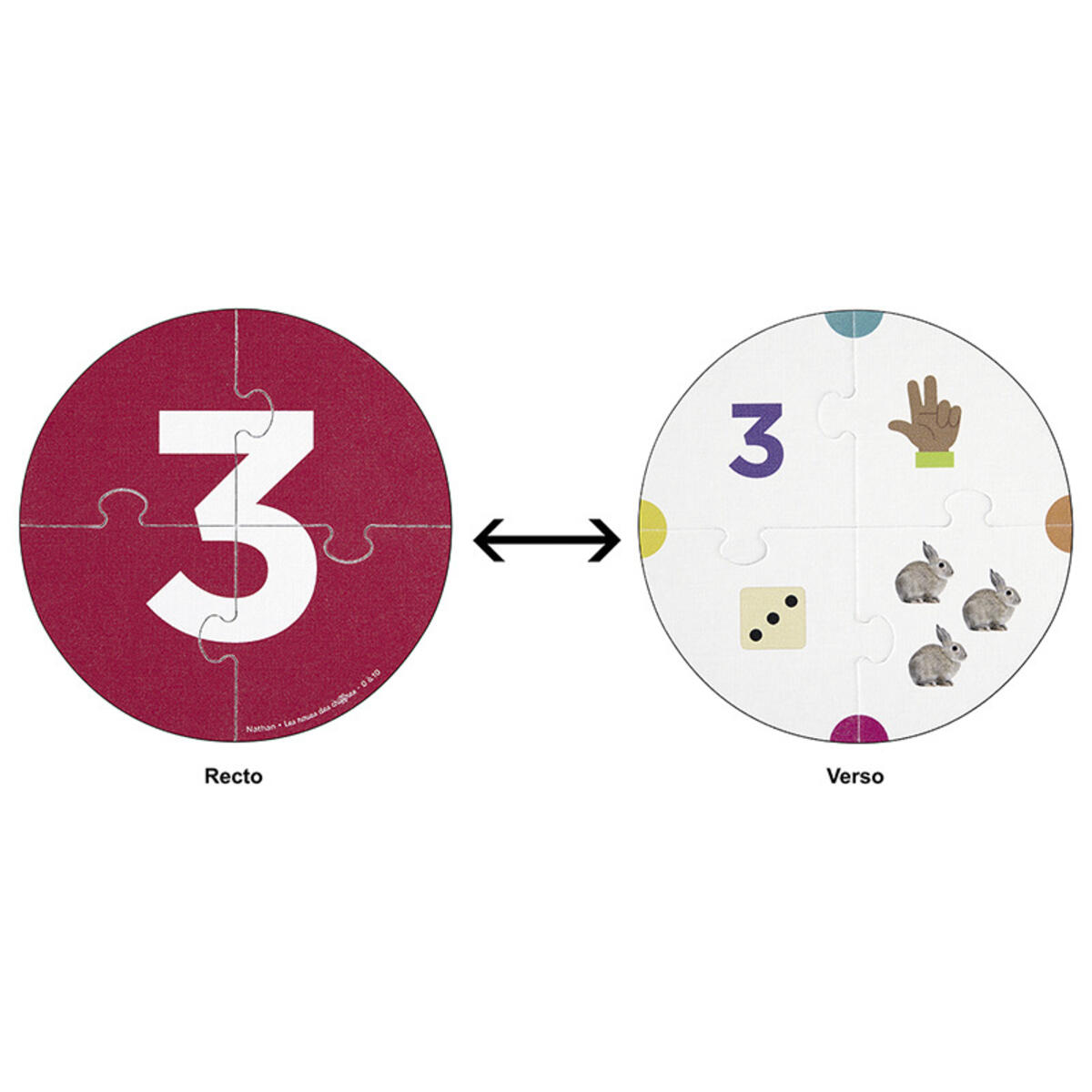 Ett självrättande spel där barnen lär sig siffrorna 0-10 genom att bygga ihop en cirkel av 4 delar, vilka visar siffran som text, tärningsögon, fingrar samt antal figurer. Baksidan fungerar som facit och visar om cirkeln byggts ihop korrekt. Innehåll: 11 sifferhjul i 4 delar. Sifferhjulens mått är ø 13 cm. PVC-fri.