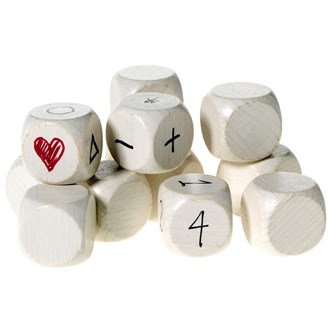 12 st/fp. Hög kvalitet, lämpliga för matematiska aktiviteter. Skriv gärna med en vattenlöslig overheadpenna, öva t.ex. 5:ans tabell. Mått: 16x16 mm. Av trä.