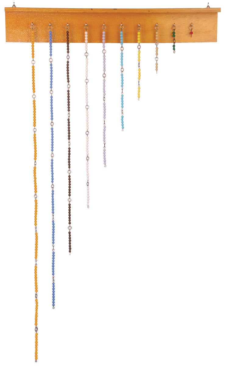 Band med 100 påträdda pärlor. Pärlorna är i 2 färger, totalt 1 m. Visualiserar tydligt 10-stegs intervaller, underlättar vid överslags- och hoppräkning samt hjälper barnen att se mönster och förhållanden. Kan användas som mätinstrument på runda saker.