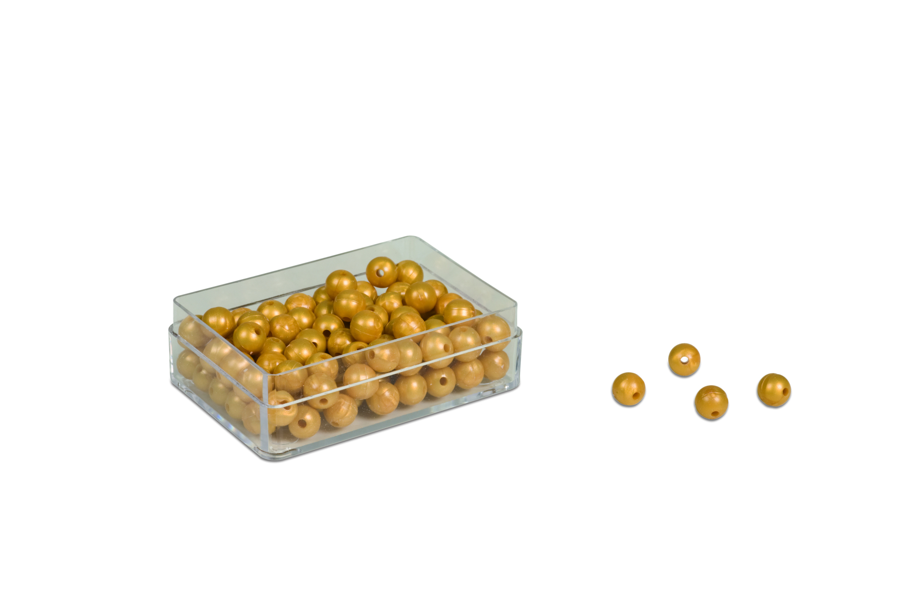 100 guldfärgade nylonpärlor i plastask med lock. Genom att känna och uppleva 1-pärlan i handen tränas muskelminnet kring hur mycket talet 1 är. Kombinerat med sifferkorten tränas att förknippa den konkreta kvantiteten med motsvarande tal. När man jämför 1 000-kuben med 100-plattan, 10-talstavar och entalsguldpärlor tränas positionssystemet. Från 6 år.