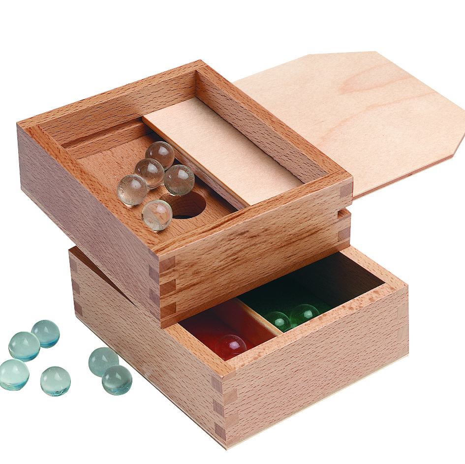 Träbox i 2 delar med skjutlock, 20 kulor medföljer. I den övre delen av boxen läggs det antal kulor i talet man jobbar med t.ex. 10, när man tränar tiokompisarna. Kulorna åker ner genom hålet eftersom botten lutar och delas slumpmässigt upp i 2 fack i den nedre delen av boxen. Facken har olika färg för att det ska bli tydligt (grön och röd). Övre delen av boxen lyfts enkelt av och man noterar hur talet 10 kan delas. Många barn tycker att det är svårt att dela upp tal, med denna kulbox blir arbetet spännande och tydligt. Material: hållbart bokträ. Från 5 år.