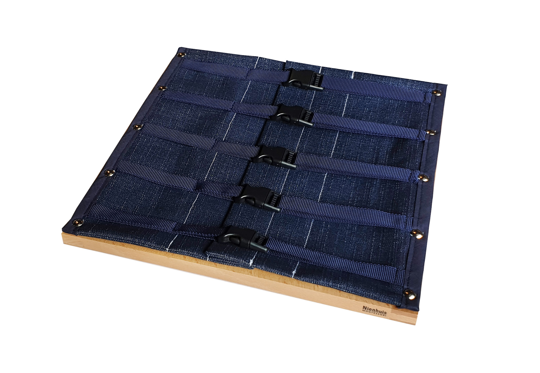 Med målet att klä på sig själv tränar barnen här på att utveckla koordination mellan öga och hand, muskelkontroll, koncentration samt självständighet genom att knyta rosetter. Slitstark och hållbar textil. Mått: L29,5xB29,5 cm. Material till ram: bokträ.
