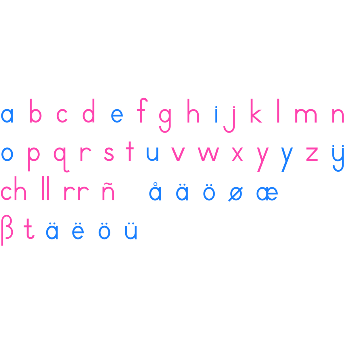 Träbrickor med bokstäverna (versaler) i sandpapper för den sensoriska upplevelsen av bokstavens form. Följ och spåra bokstäverna tillsammans med barnen. Ger ett muskelminne av hur bokstaven formas som en skrivförberedande övning. Lätta att hålla i med ena handen medan man spårar med den andra. Konsonanter är på rosa brickor och vokaler på blå. Bokstäver A-Z, kompletteras med art.nr. 145269 för nordiska bokstäver. Från 3 år.