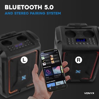 Trådlös, portabel högtalare för smartphone eller platta. Koppla in de två tillhörande mikrofonerna, en mixer eller annan ljudkälla via Bluetooth. Inbyggd multimediaspelare (USB), digital LCD-display, inbyggd equalizer, gitarr-, stereo line- och mikrofoningångar samt mix output (XLR). Fjärrkontroll och kabel (4 m NL2). Input: 3,5 mm, 6,3 mm, RCA, USB och XLR (3 stift). Output: XLR (3 stift). Mått: L360xB420xH680 mm.