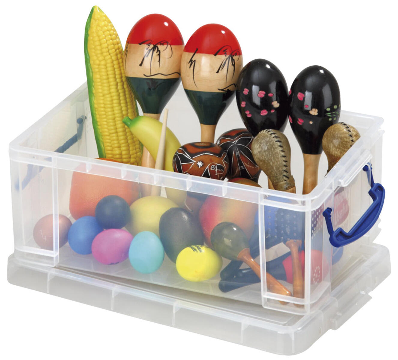 Tio olika instrument förpackade i en genomskinlig väska. Innehåller: tamburin, triangel, 2 maraccas, 2 kastanjetter, 2 claves, rytmklappa, guiro (gurka) med slagträ, 2 fingercymbaler, rasselpinne och bjällerskallra. Från 3 år.