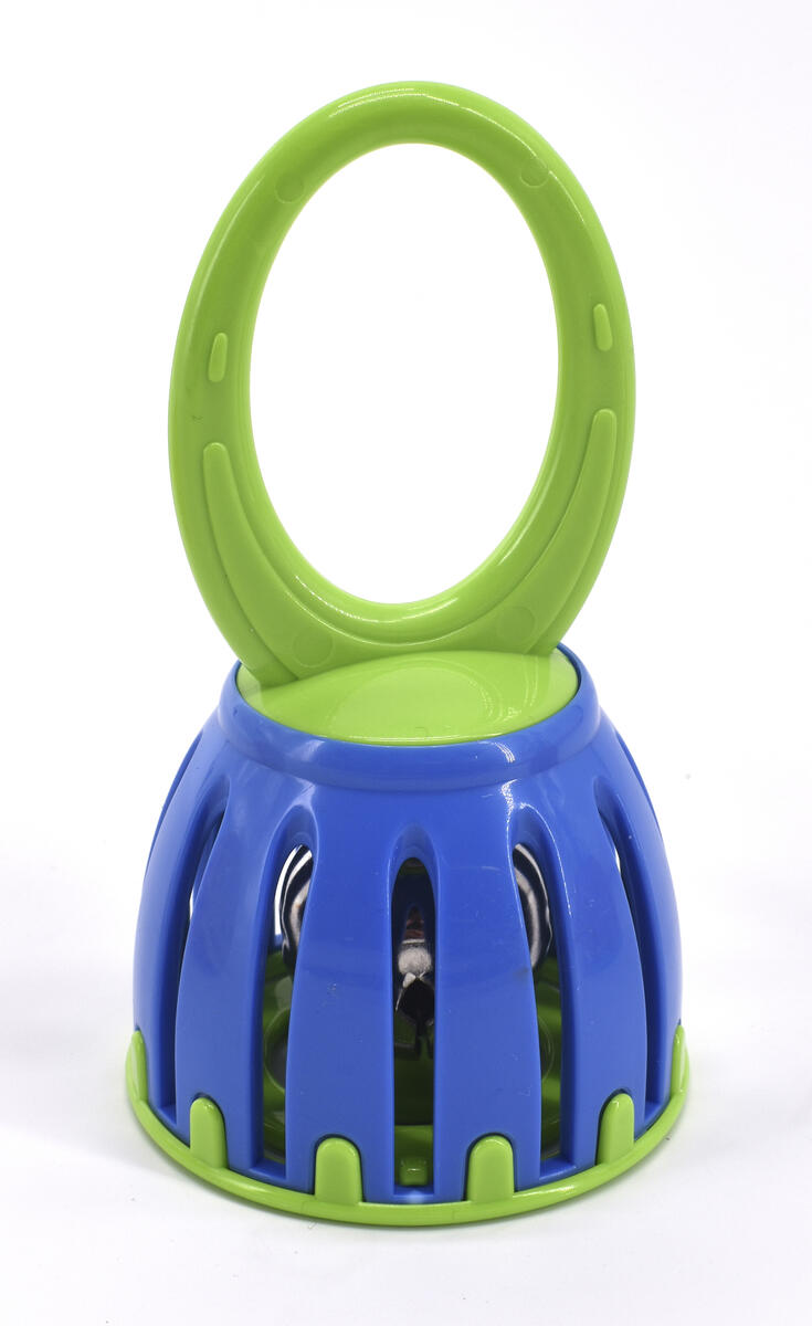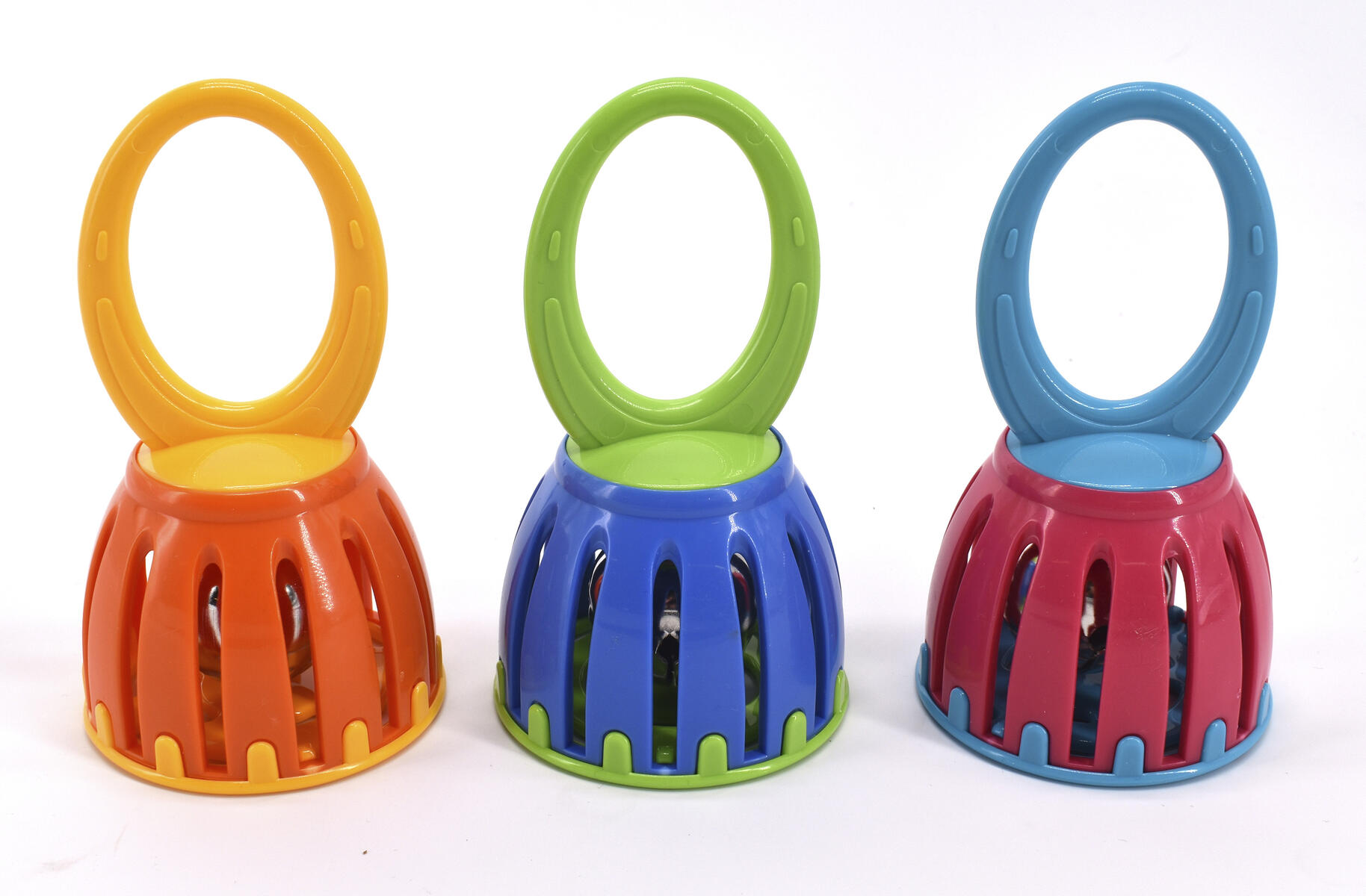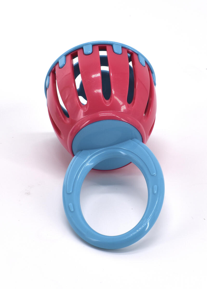 Denna skallra fångar barnens intresse med olika strukturer och starka färger. Lätt att greppa och att böja och vrida. Ett mjukt skallrande ljud. Längd 16 cm. Av ABS, EVA, POM. PVC-fri. Från 3 månader.