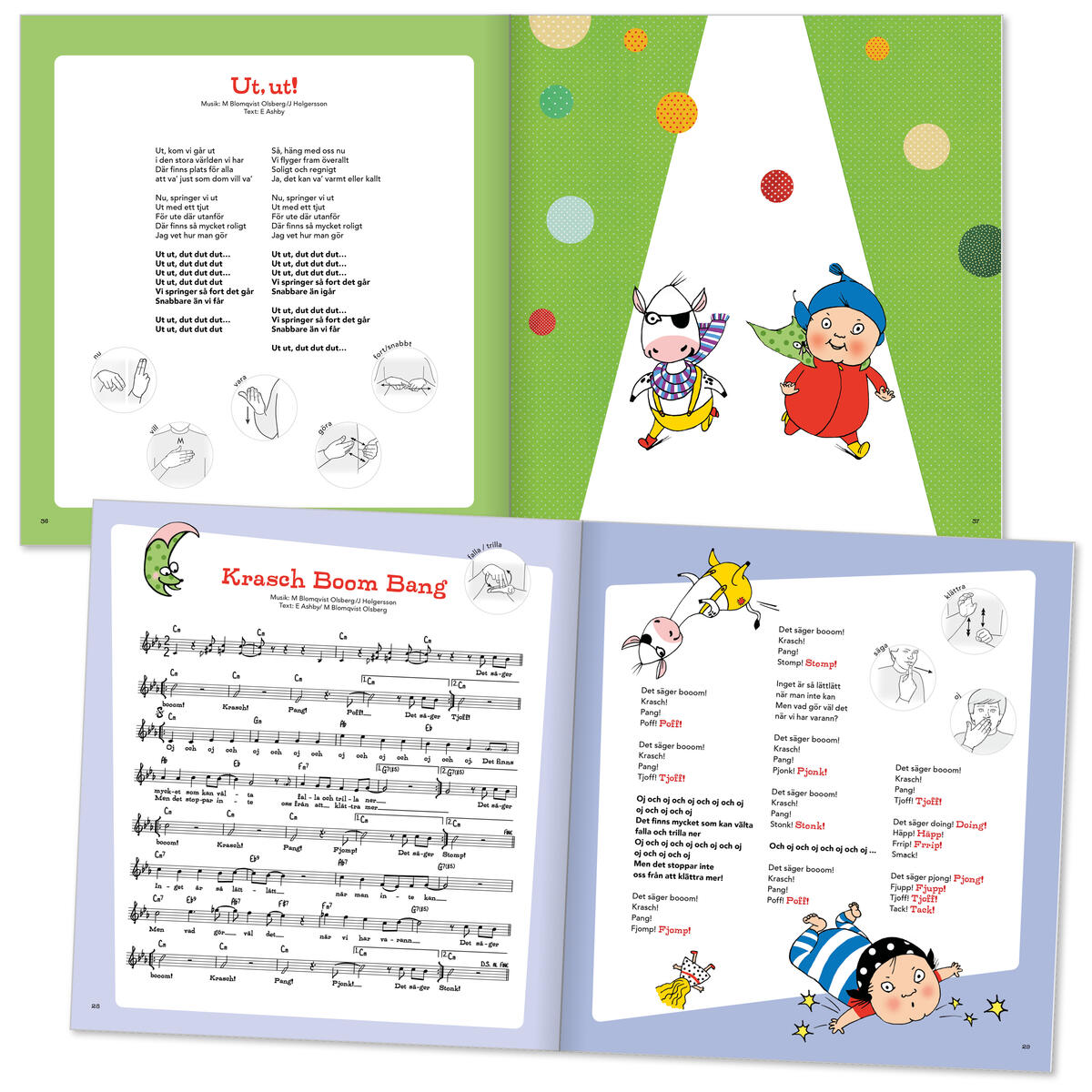 Spela och sjung Babblarnas populära och svängiga låtar! I denna stora och härligt illustrerade notbok hittar ni noter, ackord och text till Babblarnas låtar, så att ni kan spela och sjunga alldeles själva. Dessutom ett utmärkt sätt att leka med språket och lära sig nya saker på ett roligt vis. I notboken hittar du också teckenillustrationer för vissa viktiga ord. 40 sidor, 24x26 cm. Babblarnas musik finns också på cd-album, Youtube och Spotify. Låtarna används även till rolig motorisk språklek på sprakgympa.se