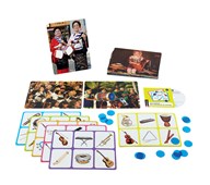 Genom att titta på bilderna av instrumenten och lyssna på cd:n lär sig barnen att känna igen olika instrument, olika familjer, vad de är gjorda av, var de kommer ifrån o.s.v. Detta kan även användas som ett lottospel. Utvecklar språket och ökar kunskapen om instrument. För upp till 6 deltagare. PVC-fri. Från 4 år.