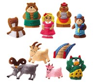 Fyra klassiska sagor i form av fina träfigurer. Sagofigurerna gör det möjligt för barnen att återberätta och spela upp historien under självstyrd ledning samt utforska andra versioner som de skapar själva. De kan även användas av pedagogen för att få mer liv i berättandet. Innehåll: Rödluvan, Tre små grisar, Tre bockarna Bruse och Guldlock. Förvaras i mjuk satinpåse som kan hängas på väggen. PVC-fri. Från 3 år.
