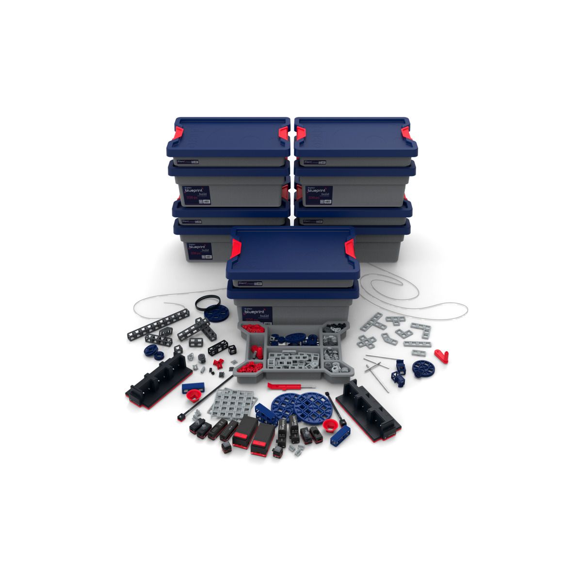 Ett klasspaket där elever lär sig teknik, robotik och design på ett praktiskt och roligt sätt helt utan programmering. Paketet innehåller fem Engineering Kits, ett tillbehörskit, en extra Power Bit och allt läraren behöver. Varje kit har 355 mekaniska delar, 17 elektriska delar, två förvaringslådor, en snabbstartsguide och 10 utmaningskort. Eleverna bygger egna prototyper och lär sig om mekanik, el och konstruktion. Över 100 timmar färdiga lektioner, mer än 30 byggprojekt och 2 lärarhandledningar – allt anpassat till läroplanen. Paketet passar både nybörjare och mer erfarna elever och kan kombineras med Blueprint Build. Stöd för CAD-program som SolidWorks, Onshape och STEP-filer ingår. Från 14 år.