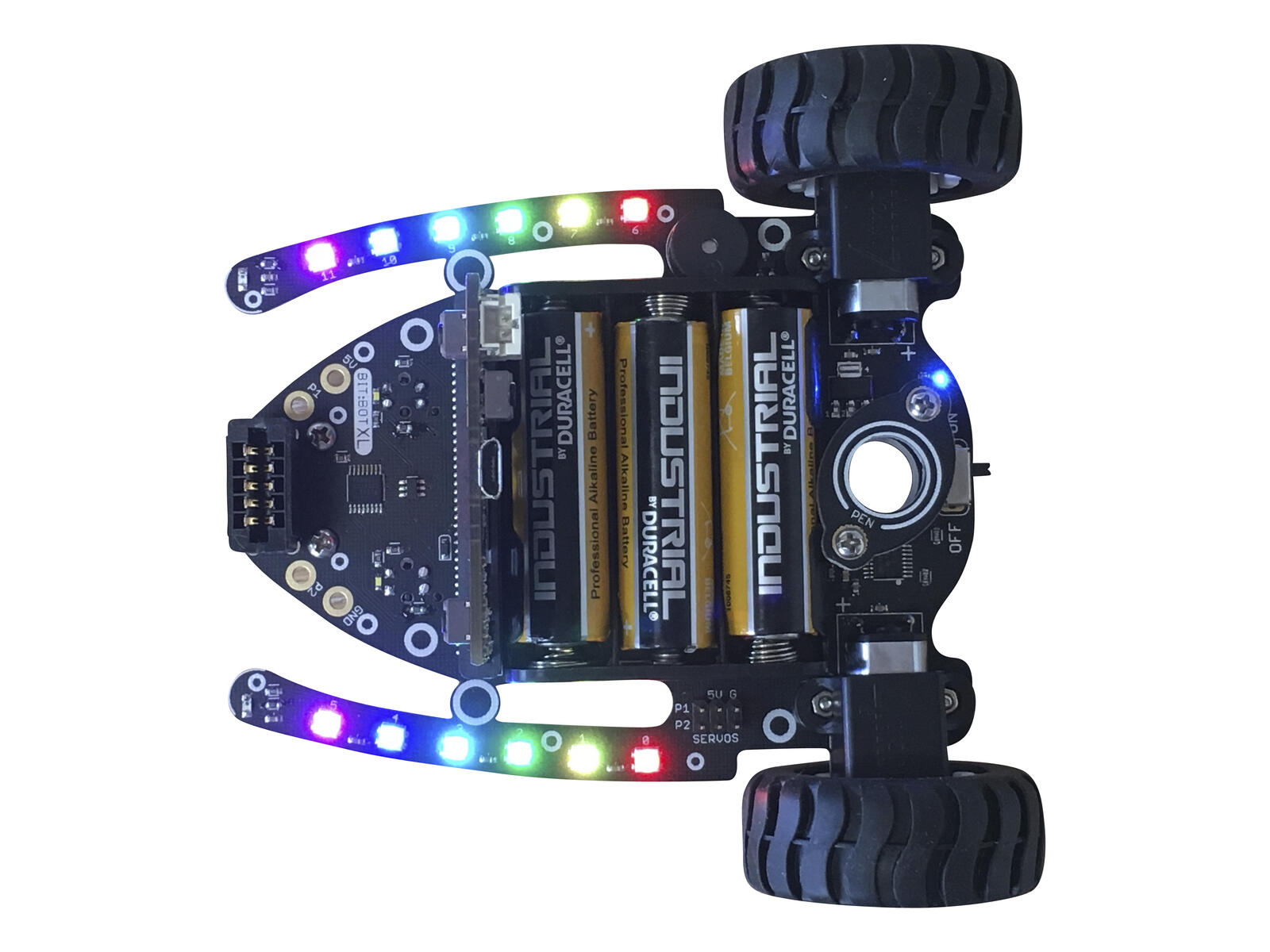 En tvåhjulsrobot som är färdigbyggd och kontrolleras med micro:bit (ingår ej). Roboten har en rad funktioner som kan styras, t.ex. lysdioder på bägge sidor, sensorer som kan måla underlagets färg (linjesensor) och en buzzer till ljudsignaler. Drivs av 3 st AA-batterier (köps separat).