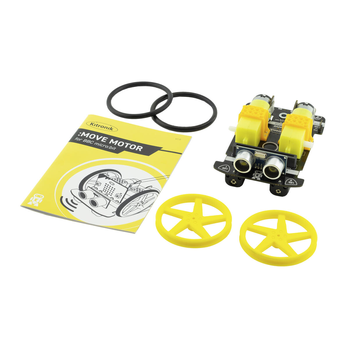 En färdigbyggd buggy med fokus på programmering. Lär eleverna om rörelser, att använda ljud och ljus, upptäcka samt undvika hinder och hur man kodar för att följa en linje. Drivs av två DC-motorer och gummihjul för följsam kontroll. För programmering används MakeCode editor eller Python. Kräver 1 micro:bit, 1 USB A till Mikro B och 4 AA-batterier, allt säljs separat. Se PDF för ytterligare information.