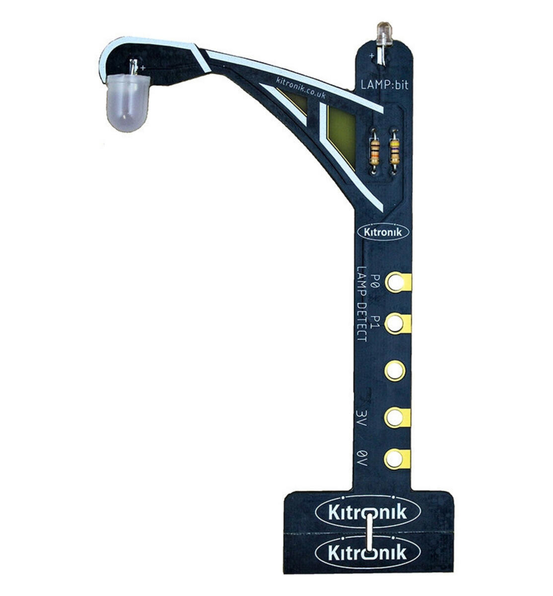 1 st/fp. Kontrollera en modell av ett gatljus med micro:bit. Det är ett praktiskt tillbehör som simulerar ett gatljus och är särskilt utformat för att användas i trafikrelaterade projekt tillsammans med micro:bit. Kortet har anslutningar där micro:bit enkelt kan skruvas eller klämmas fast utan lödning, och har en inbyggd fototransistor som gör det möjligt att reagera automatiskt på förändringar i ljusstyrka genom att styra den vita lysdioden. Kortet har samma storlek och stil som micro:bit STOPP, vilket gör det enkelt att kombinera i projekt. Strömmen kommer direkt från micro:bit via 0V- och 3V-stiften, och anpassade kodblock finns tillgängliga i MakeCode-editorn för smidig programmering. En del av kortet kan knäppas av och bildar då en stadig bas. Levereras med 1 gatlyse för micro:bit, 5 st försänkta M3-skruvar (8 mm) och 5 st M3-mutter. Mått: H135xB75 mm och basbredden är 42 mm. Rekommenderas fr. 10 år, beroende på handledning och projektets svårighetsgrad.