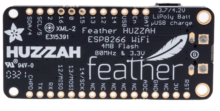 Adafruit Feather är en familj av tunna, lätta utvecklingsskivor gjorda för prototyper. De är utformade för att användas på egen hand eller staplas för flera funktioner.