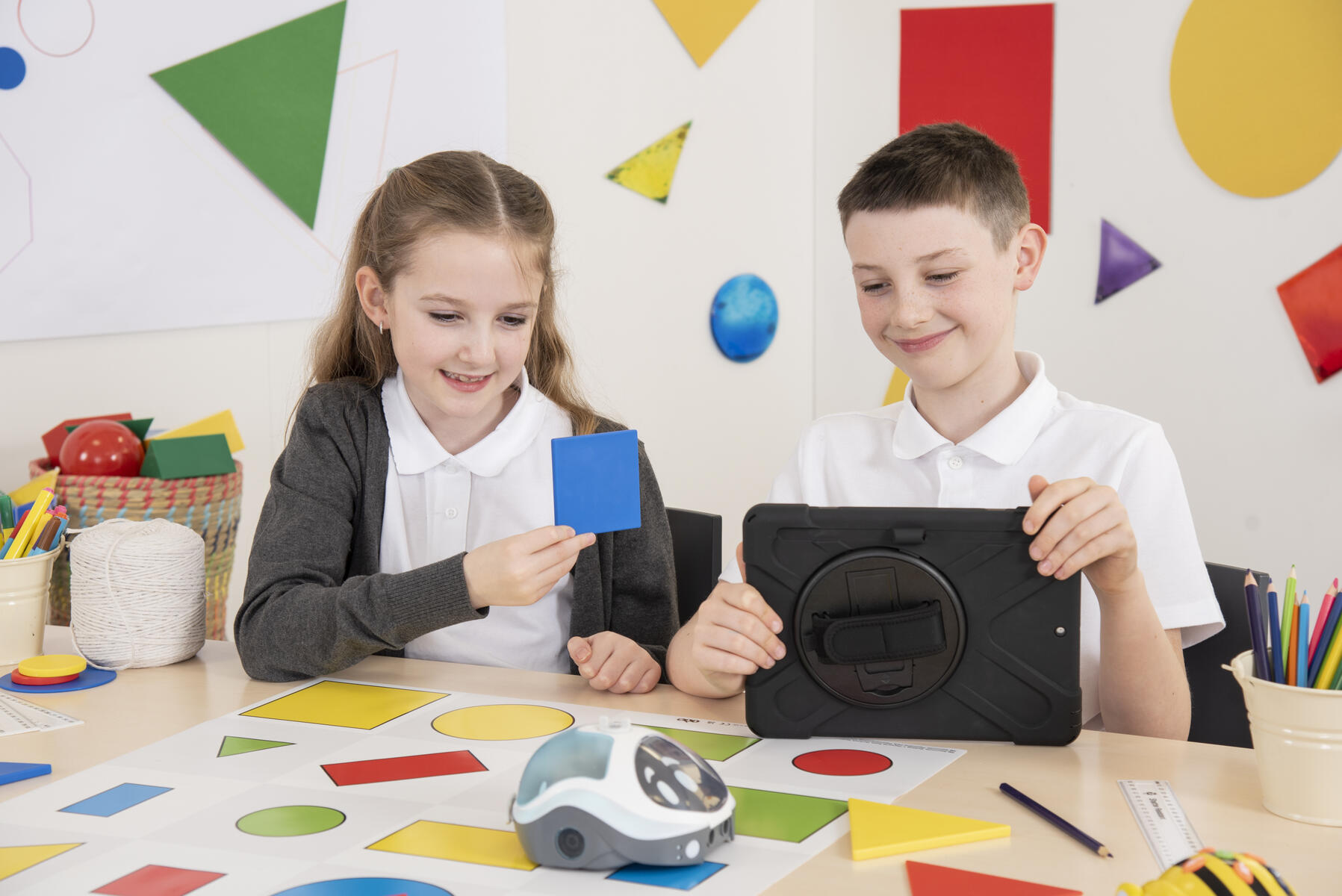 6 st/fp. Blue-Bot är en golvrobot med bluetooth vilket innebär att den kan styras från en surfplatta eller en dator men även programmeras med enkla knapptryckningar på ryggen. Blue-Bot åskådliggör sambandet mellan orsak och verkan samt ger övning i uppföljning och kontroll. Denna version är uppdaterad gällande motorer och kablage vilket gör roboten mer tillförlitlig i sina rörelser samt har "push safe mode" som minskar slitage vid felaktig körning. Detta påverkar även ljudvolymen vid körning då den kör tystare. Uppladdningsbar, USB-sladd ingår. Längd 12 cm. Bredd 10 cm. Av ABS, POM. Lämplig från 3 år och uppåt.