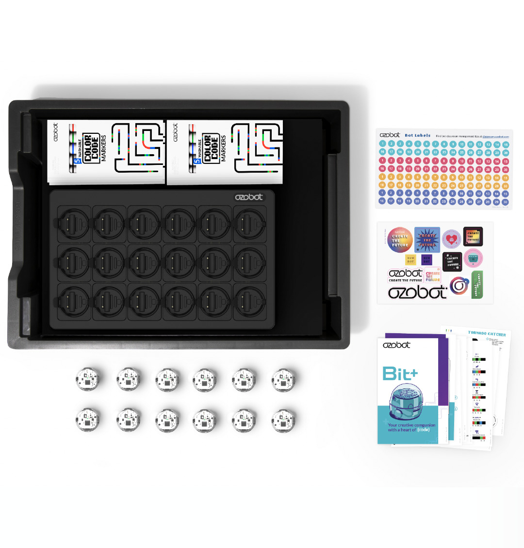 Introducerar programmering utan tidigare erfarenhet. Programmera online med Ozobot Blockly eller skärmfritt med Color Code-markörer. Ozobot Blockly har fem färdighetsnivåer, från nybörjare till proffs. Färgkoderna lär ut grundläggande datalogiska färdigheter, kritiskt tänkande och felsökning. Innehåll: 12 Ozobot Evo, 12 uppsättningar Dual-tip Color Code-pennor, Aktivitetsstöd, 1 laddningsdocka och strömkabel, 1 klistermärkessats för roboten, 1 klistermärkessats med Ozobot-varumärket samt åtkomst till över 700 gratislektioner inom STEAM.